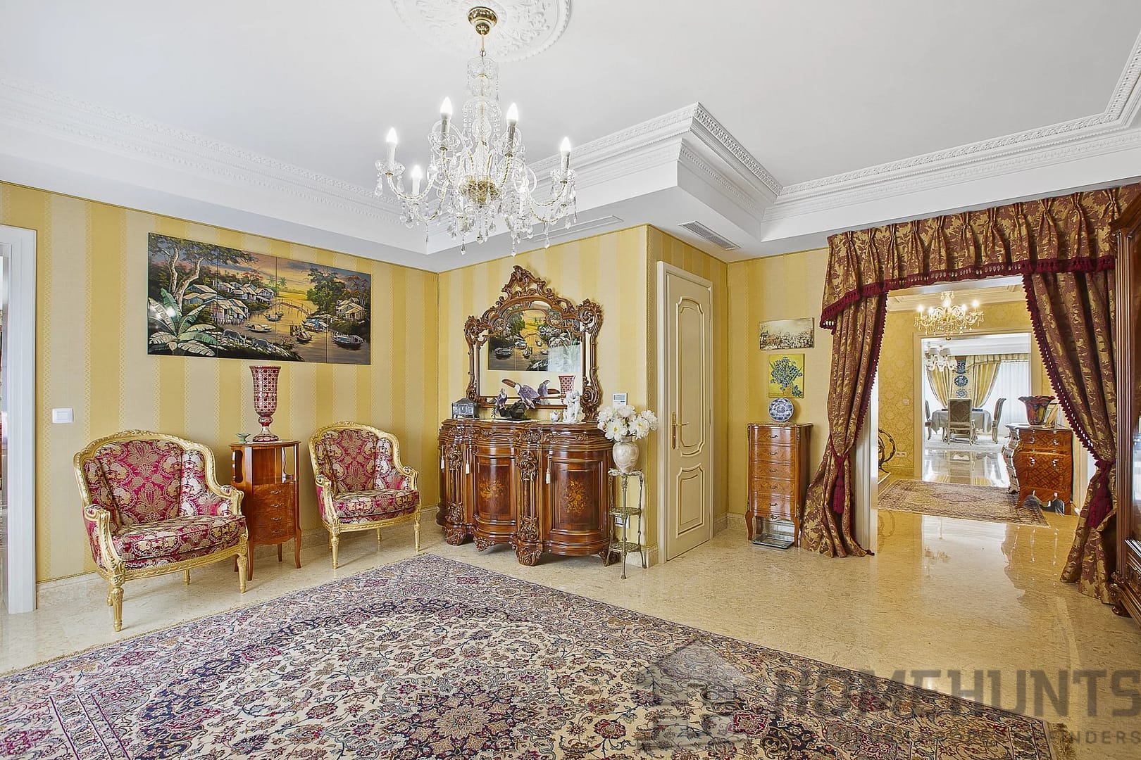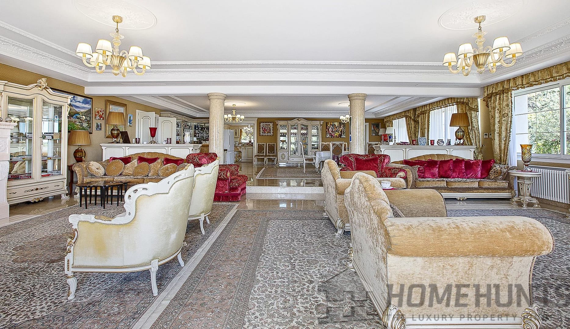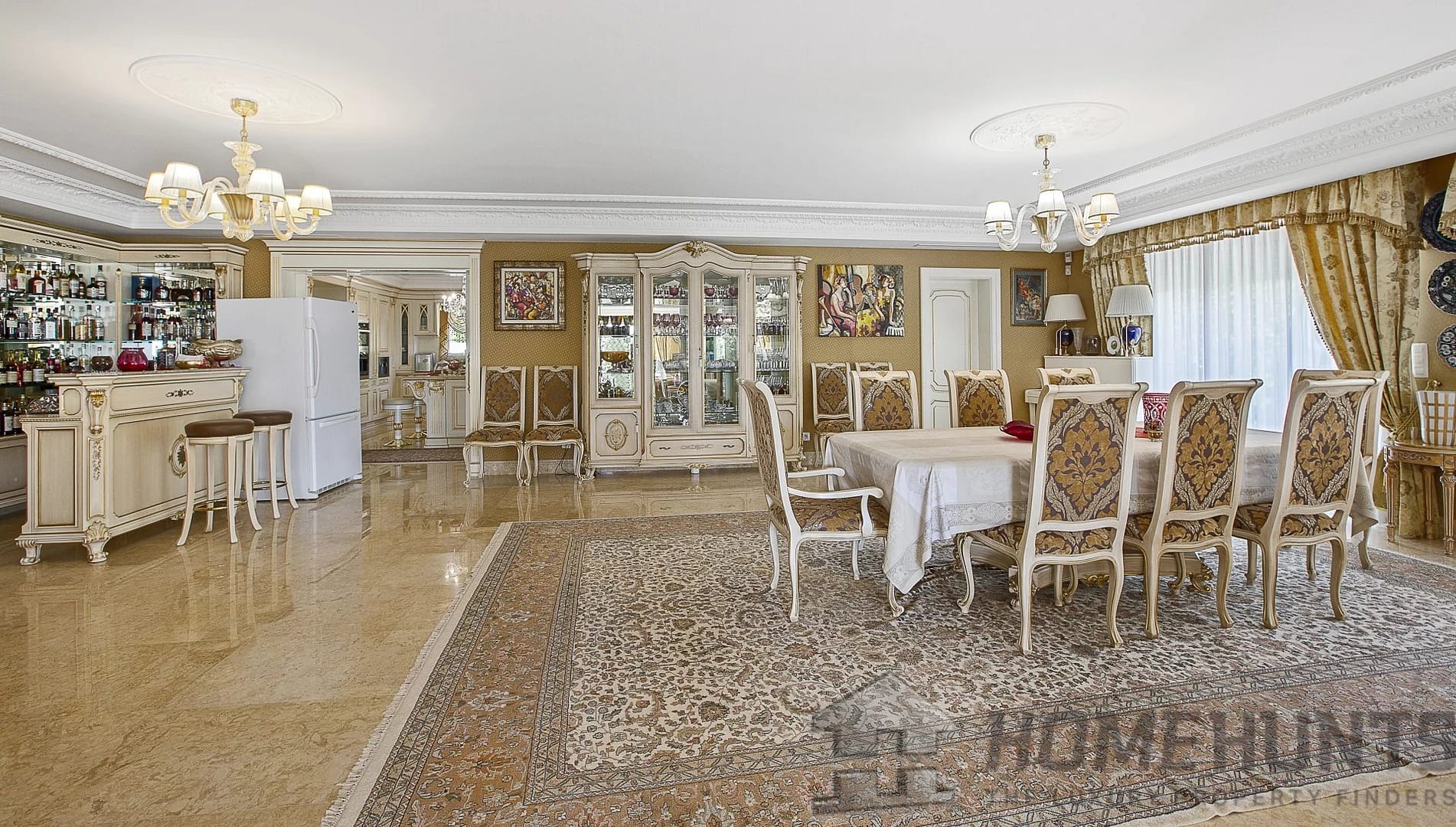 The spacious living room and dining area, spanning over 150 m2, are flooded with natural light, creating an elegant and welcoming environment for entertaining guests or simply relaxing with family.