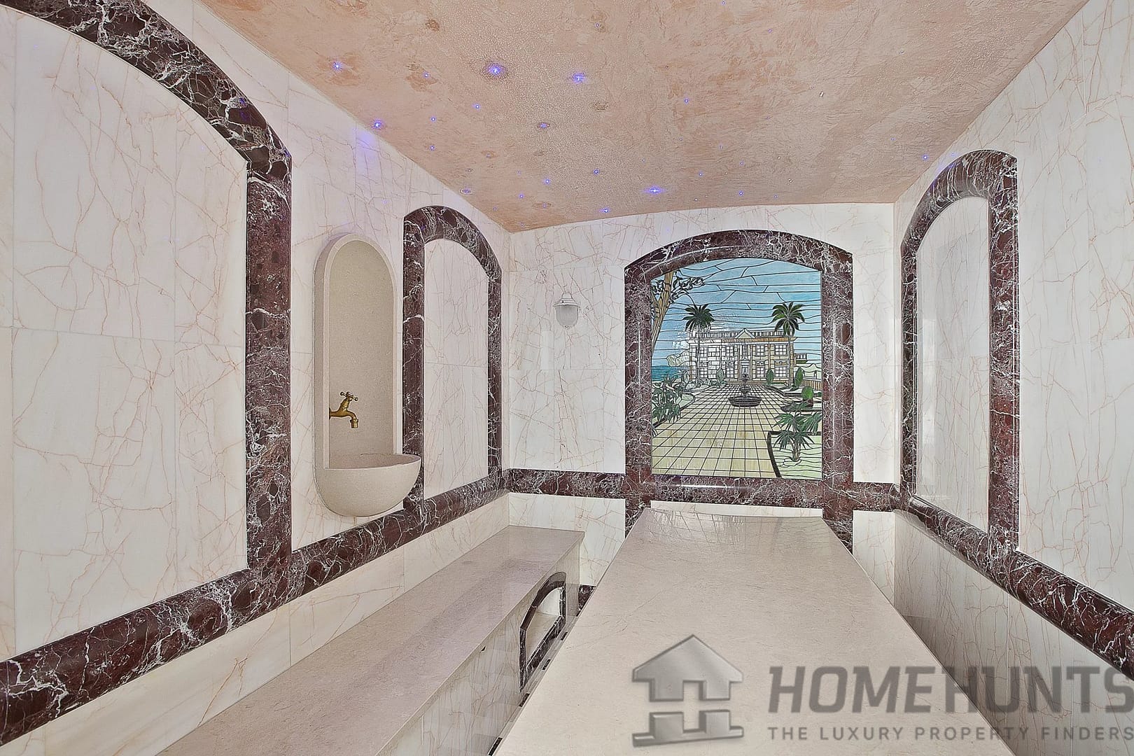 The summer kitchen with a barbecue and oven is perfect for outdoor dining and social gatherings. And for ultimate relaxation and well-being, a private spa area with sauna and steam room awaits you.