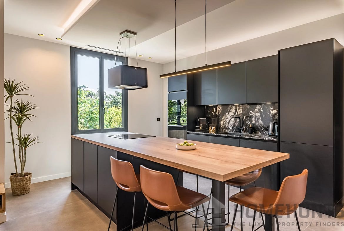 Ideally located close to the town centre, shops and schools, this magnificent character villa has recently been completely renovated in a sober, chic contemporary style.