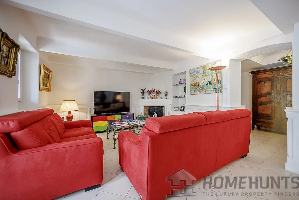 In a peaceful setting with clear sea views from the terraces of the bedrooms on the 1st and 2nd floors. 5 bedrooms, beautiful large fully-equipped modern kitchen, dining room and living room with fireplace opening onto a beautifully landscaped inner courtyard with pool where you can relax in the cool of the evening.