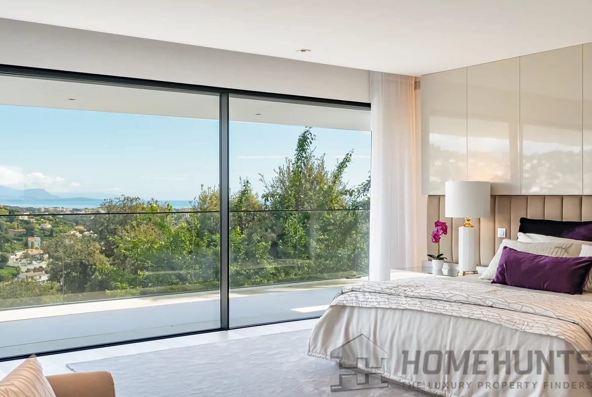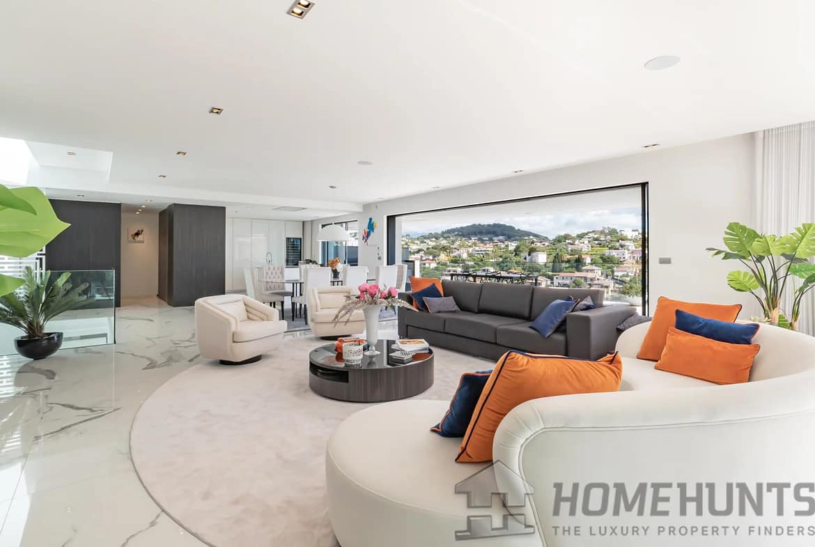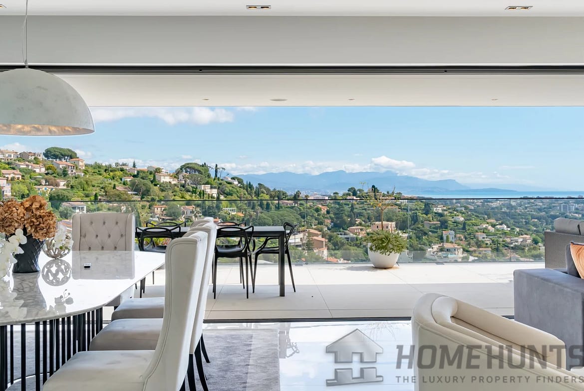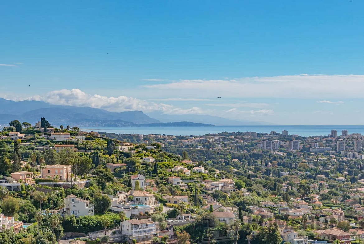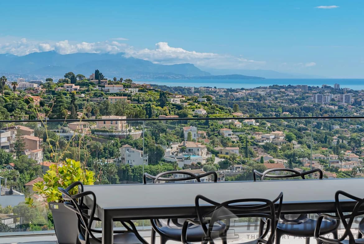 Located on the heights of one of the sought-after areas of Super Cannes, this sublime contemporary new construction enjoys a fantastic panoramic view of the sea.