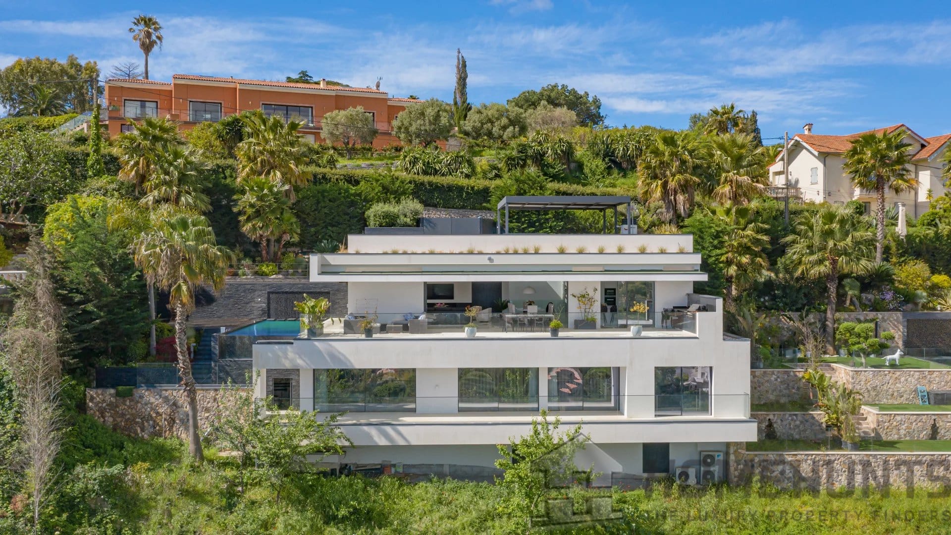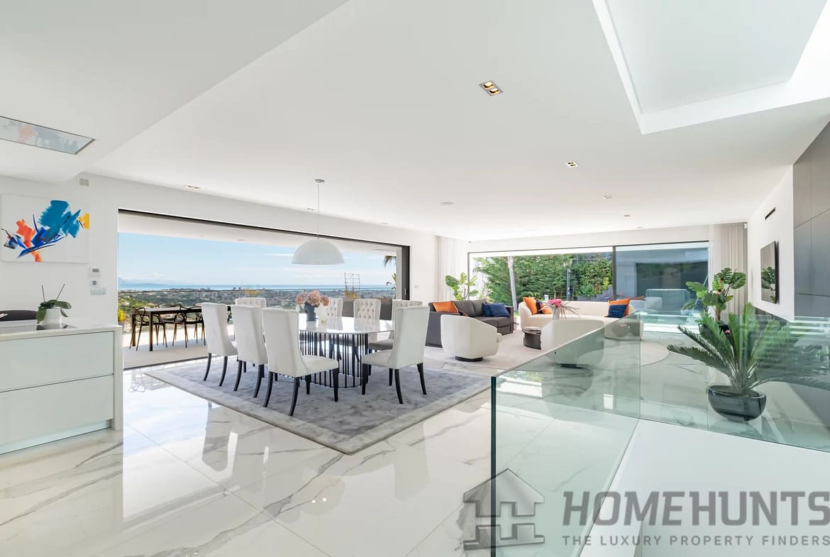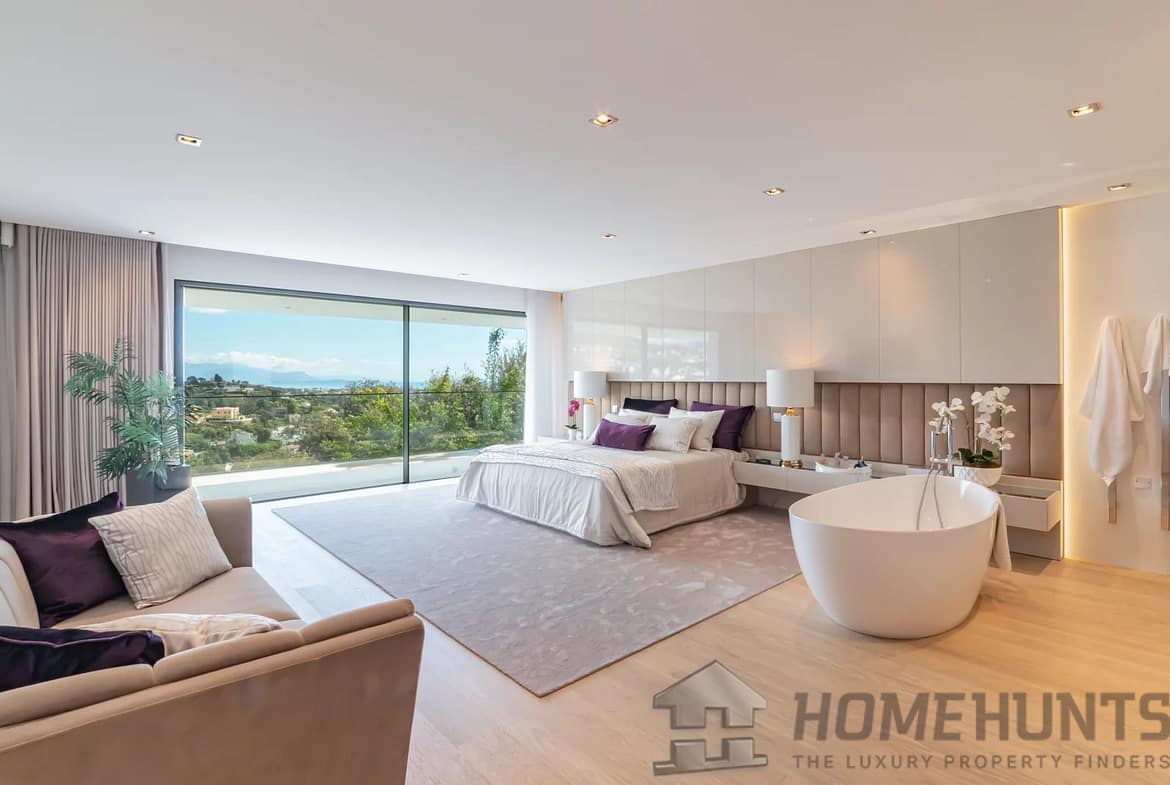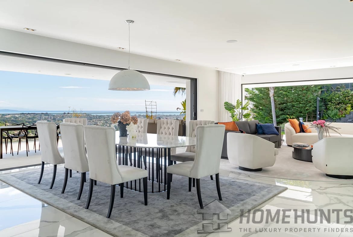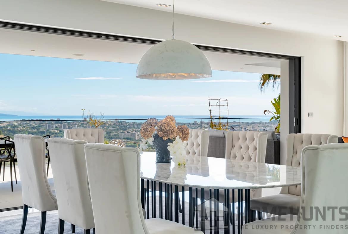 Located on the heights of one of the sought-after areas of Super Cannes, this sublime contemporary new construction enjoys a fantastic panoramic view of the sea.