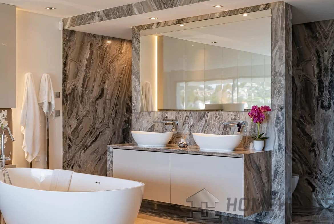 With an area of 380 m2, the villa offers generous volumes on only two levels.