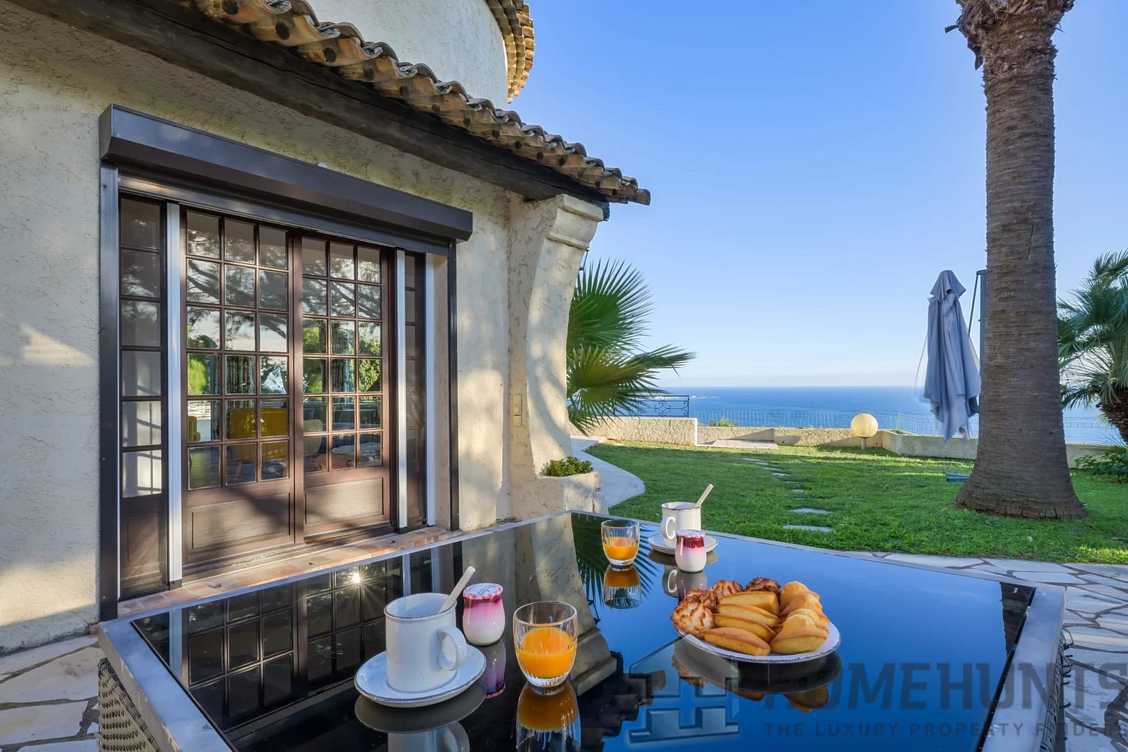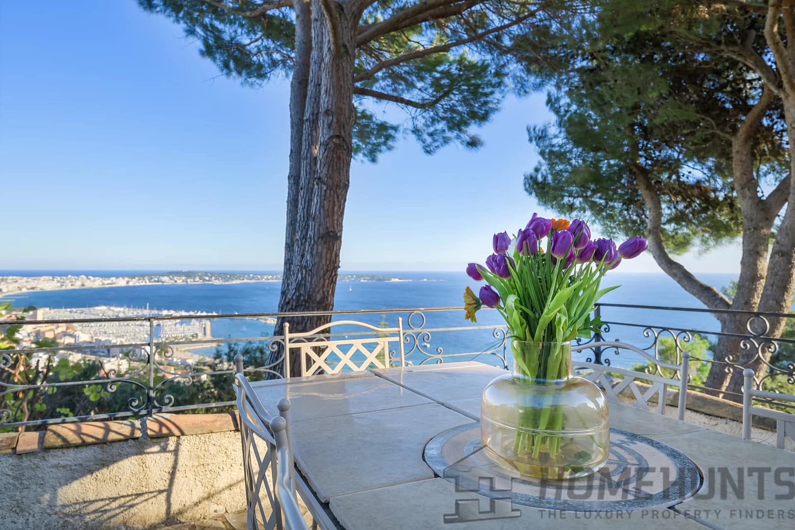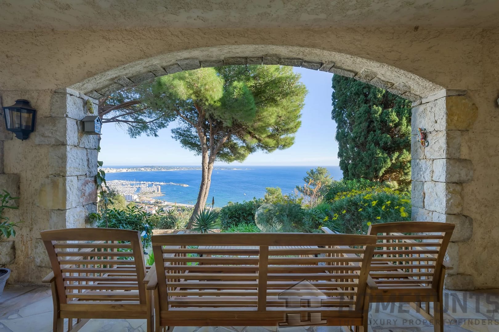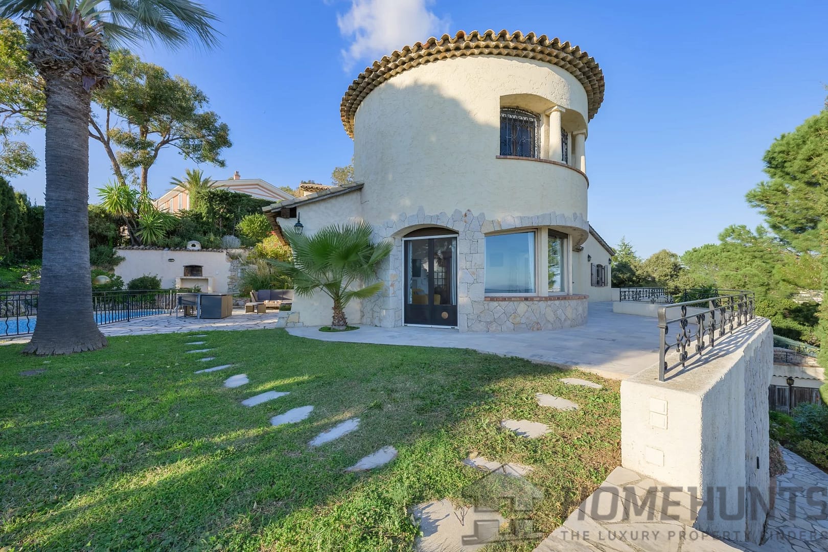 The villa is completely private, offering an extraordinary, unobstructed view of the sea and the Lerins Islands. The property sits on approximately 2,000 m2 of land with a swimming pool and garage.