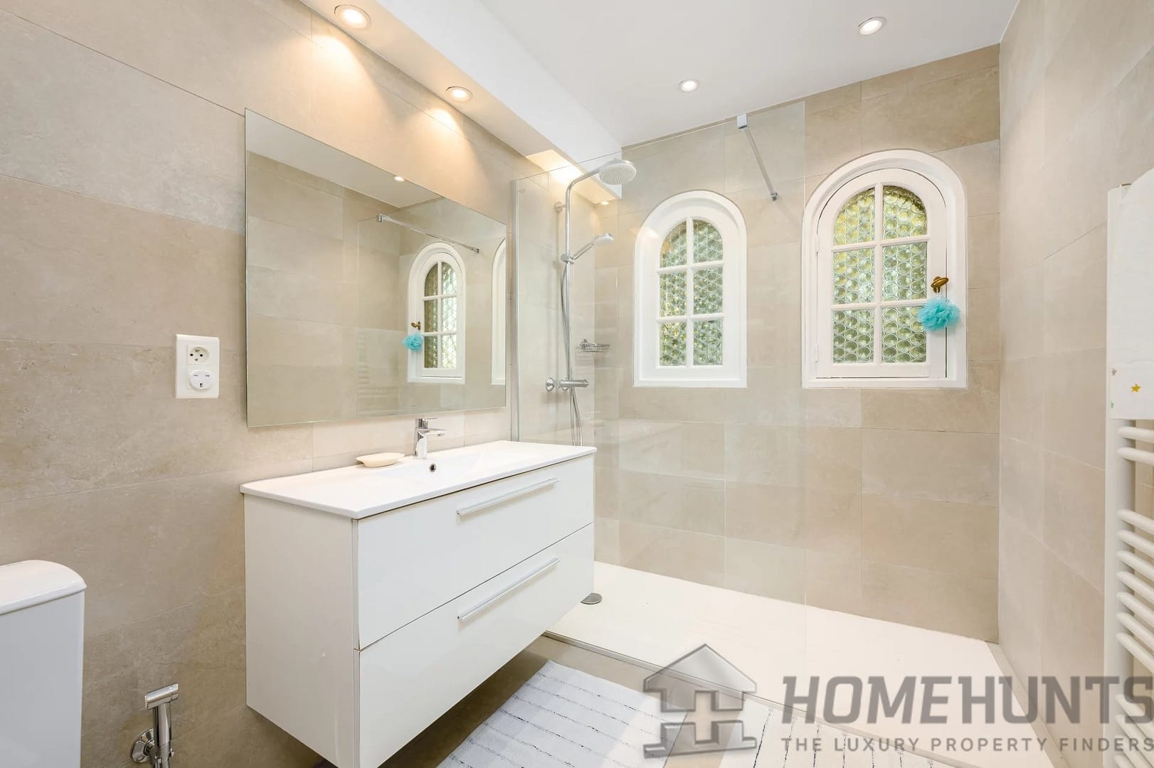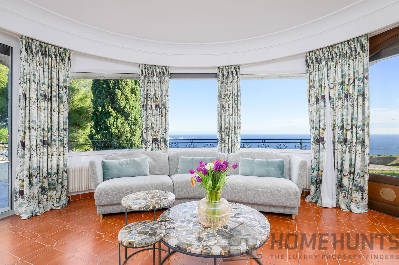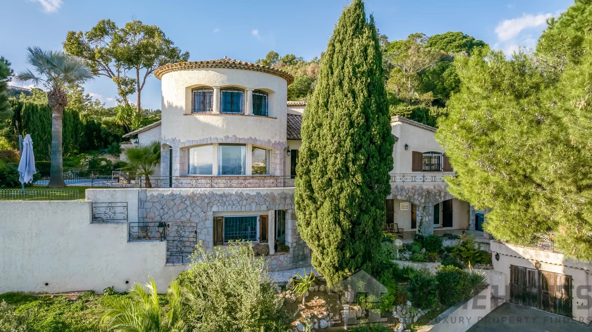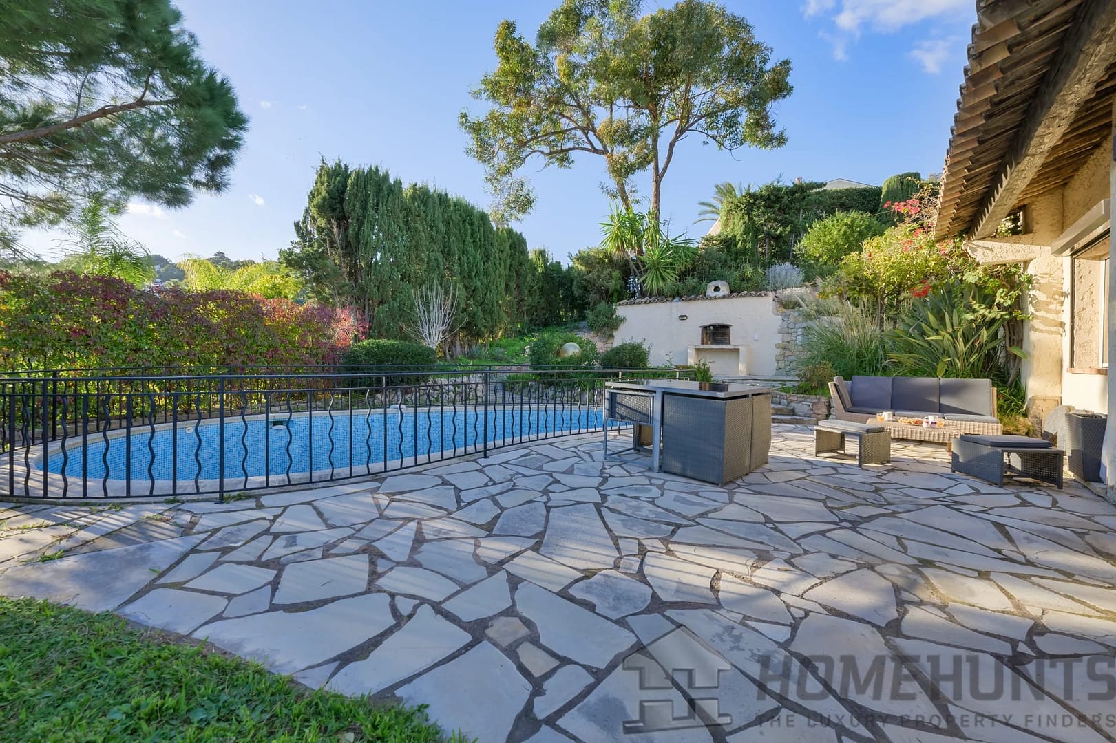 The villa is completely private, offering an extraordinary, unobstructed view of the sea and the Lerins Islands. The property sits on approximately 2,000 m2 of land with a swimming pool and garage.