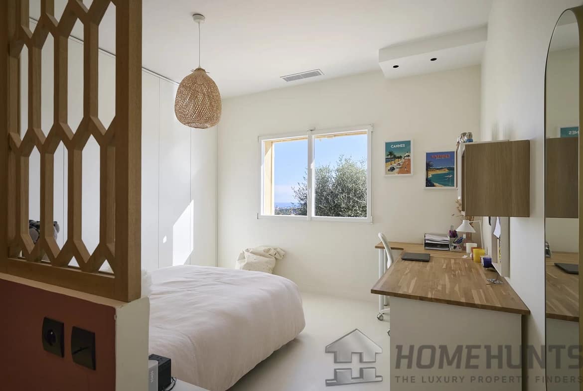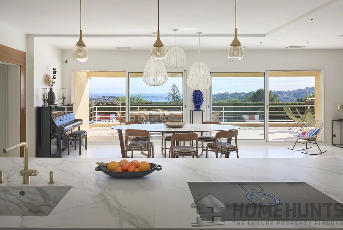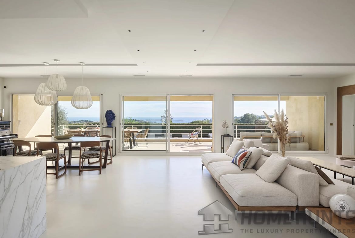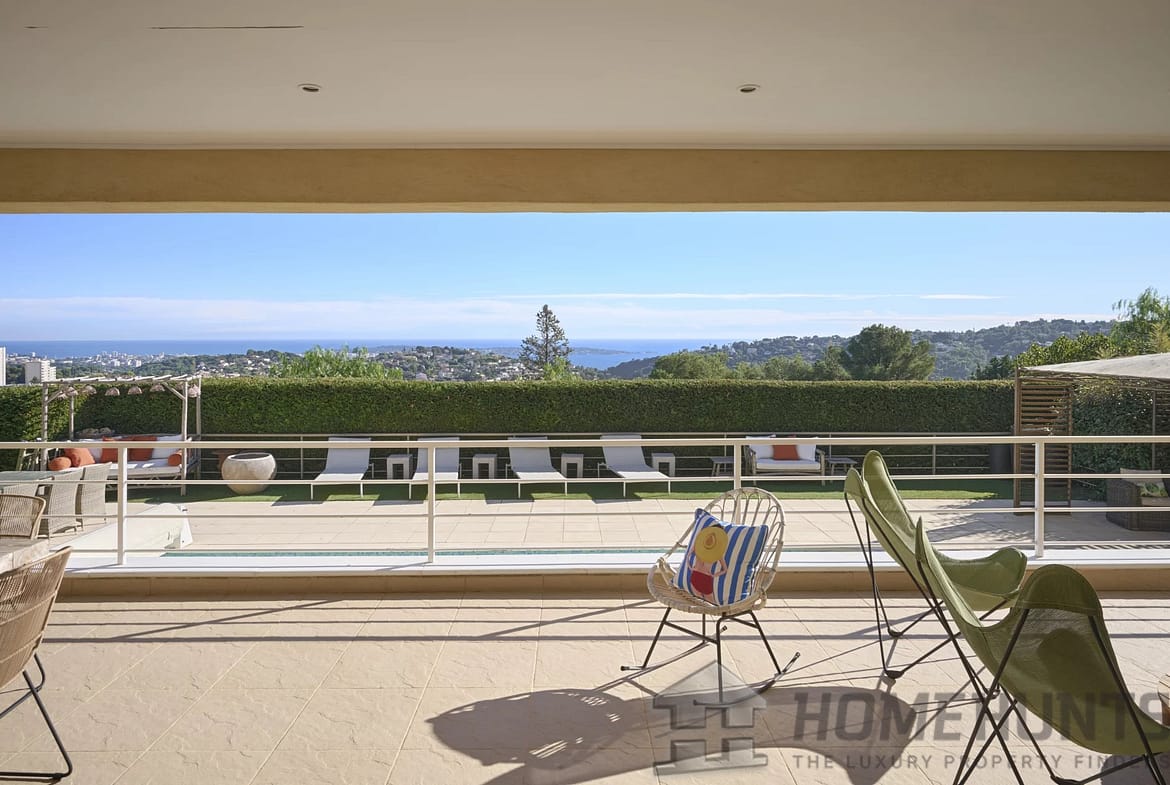 Super Cannes, in the hills above Vallauris, just a short distance from the main roads and the center of Cannes, this attractive, modern single-storey villa offers panoramic views of the sea, Cap d’Antibes and the mountains.