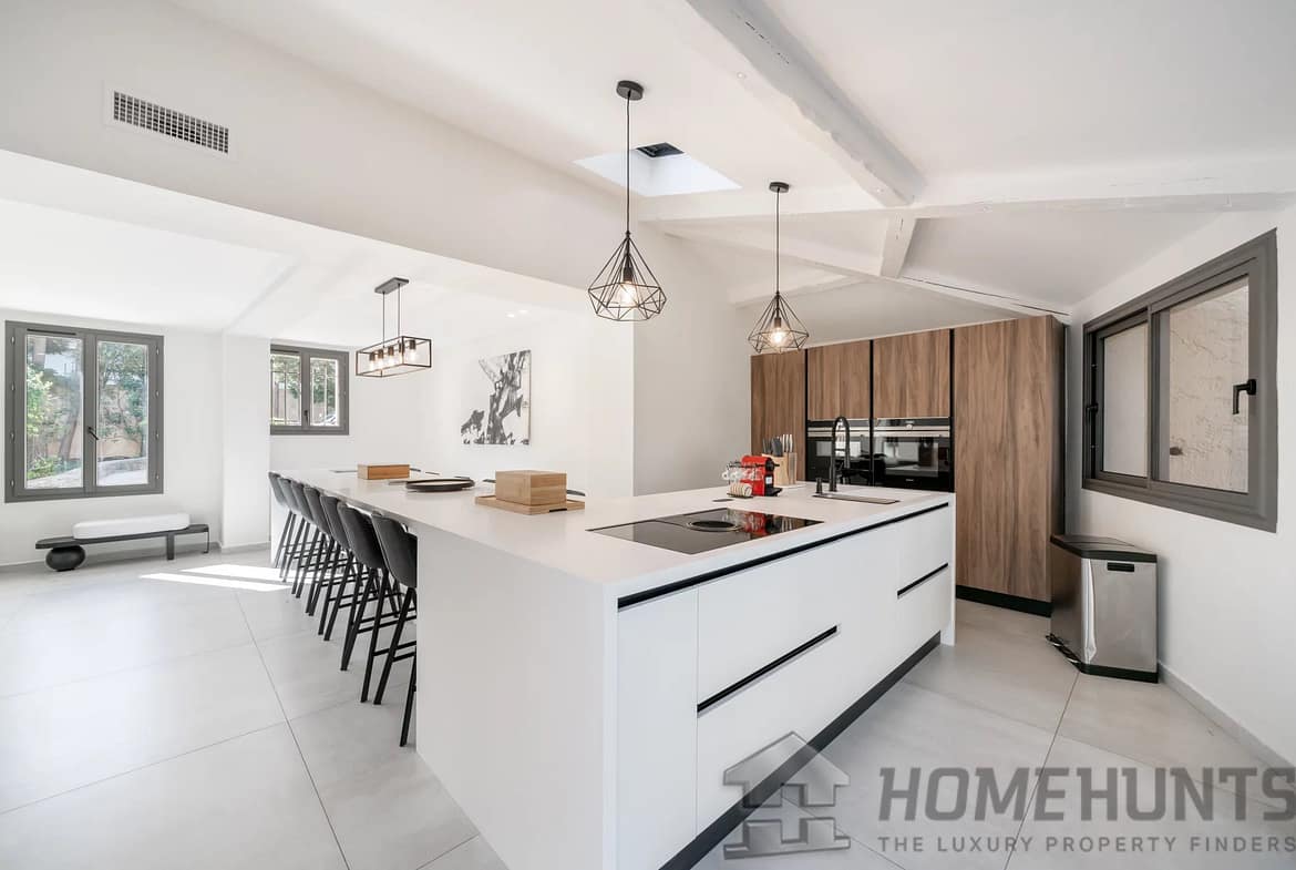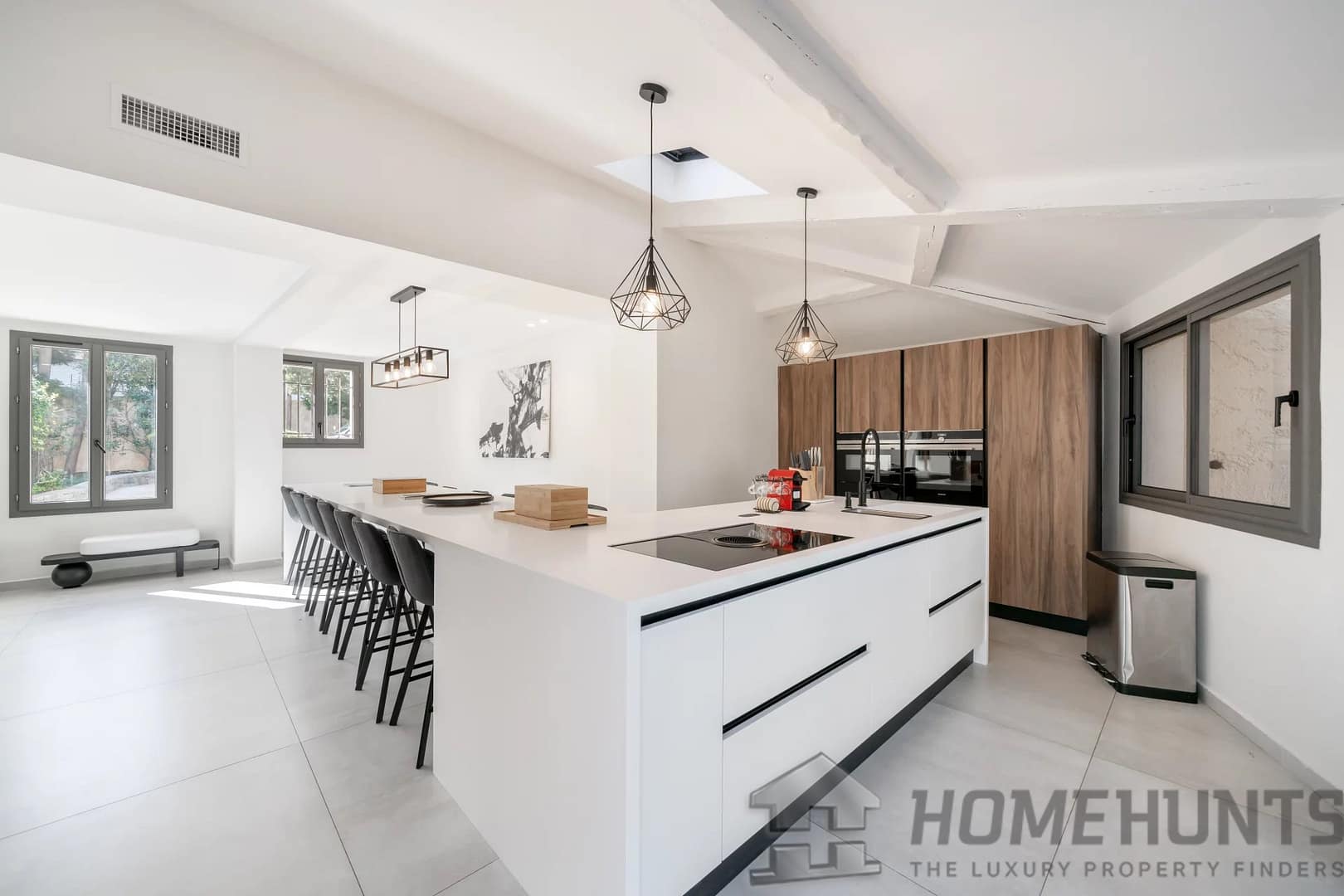 Meticulously renovated to an impeccable standard, this distinguished residence boasts approximately 450 m2 of light-filled living space. The main villa and its independent guest house together provide a total of 10 rooms, including 7 beautifully appointed bedrooms, offering flexibility for family living or entertaining guests in complete comfort.