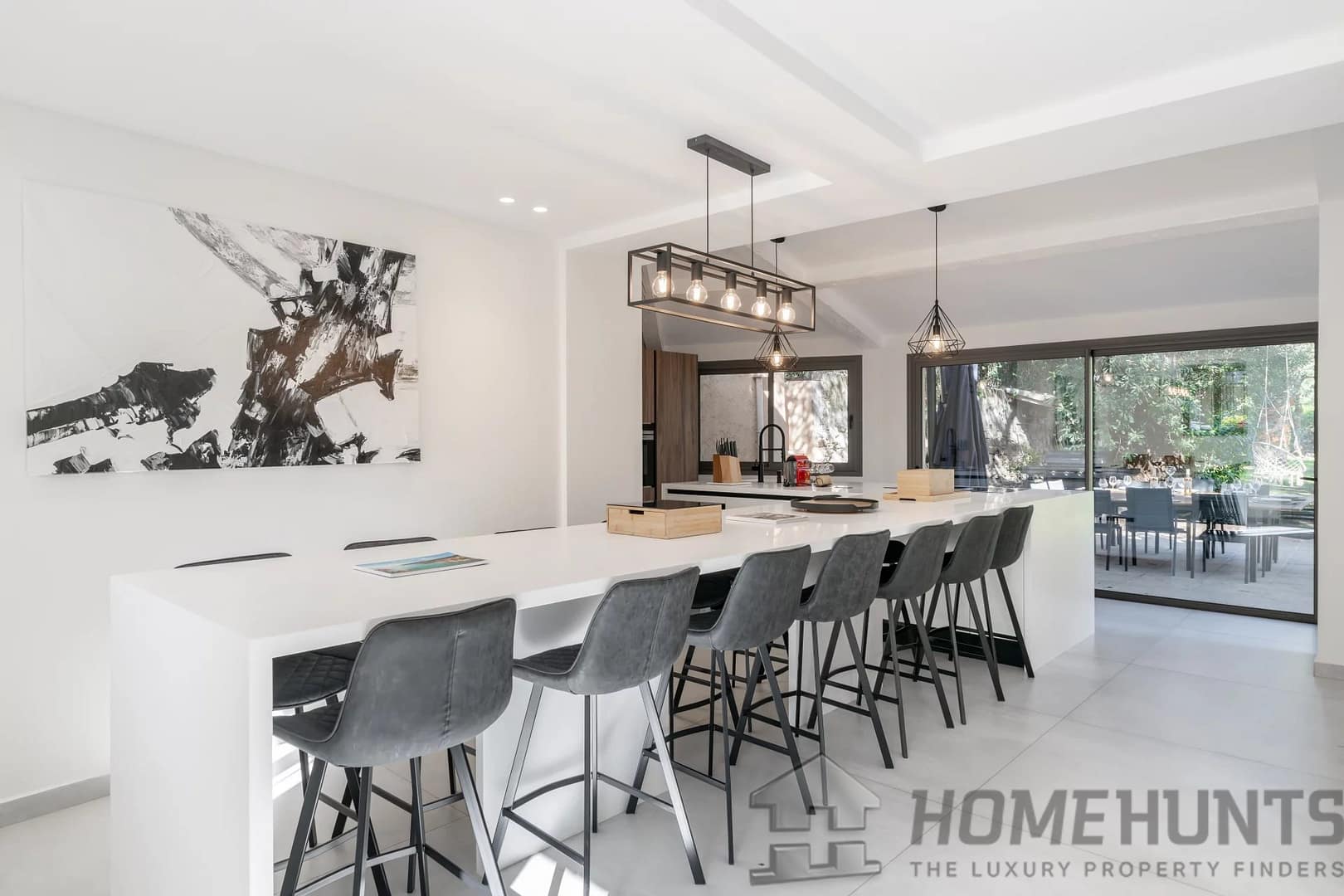 The spacious kitchen and luminous reception areas are thoughtfully designed to embrace an effortless indoor-outdoor lifestyle, ideal for hosting in style or savoring quiet moments overlooking the coastline.