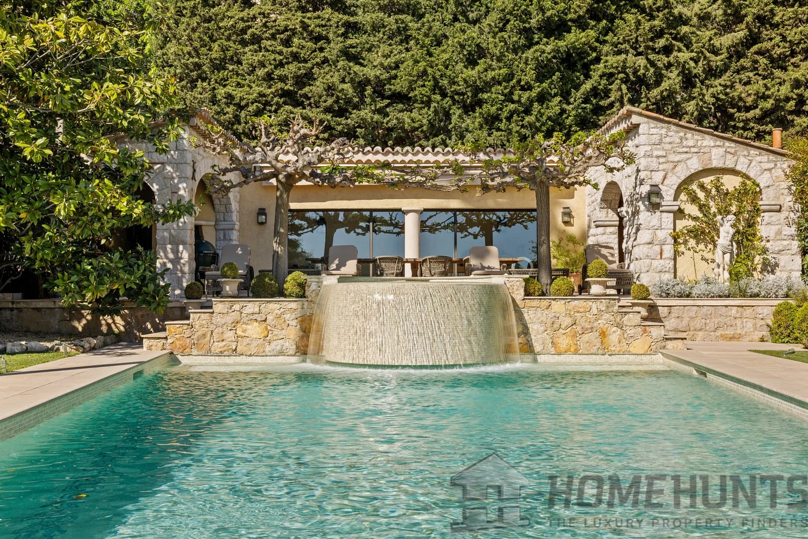 The thoughtful floor plan encompasses nine beautifully appointed bedrooms, including several that open onto terraces with mesmerizing seascapes. A spectacular swimming pool with cascading water feature creates a resort-like atmosphere within the private grounds, complemented by multiple stone terraces that provide perfect settings for both intimate gatherings and larger scale entertaining.