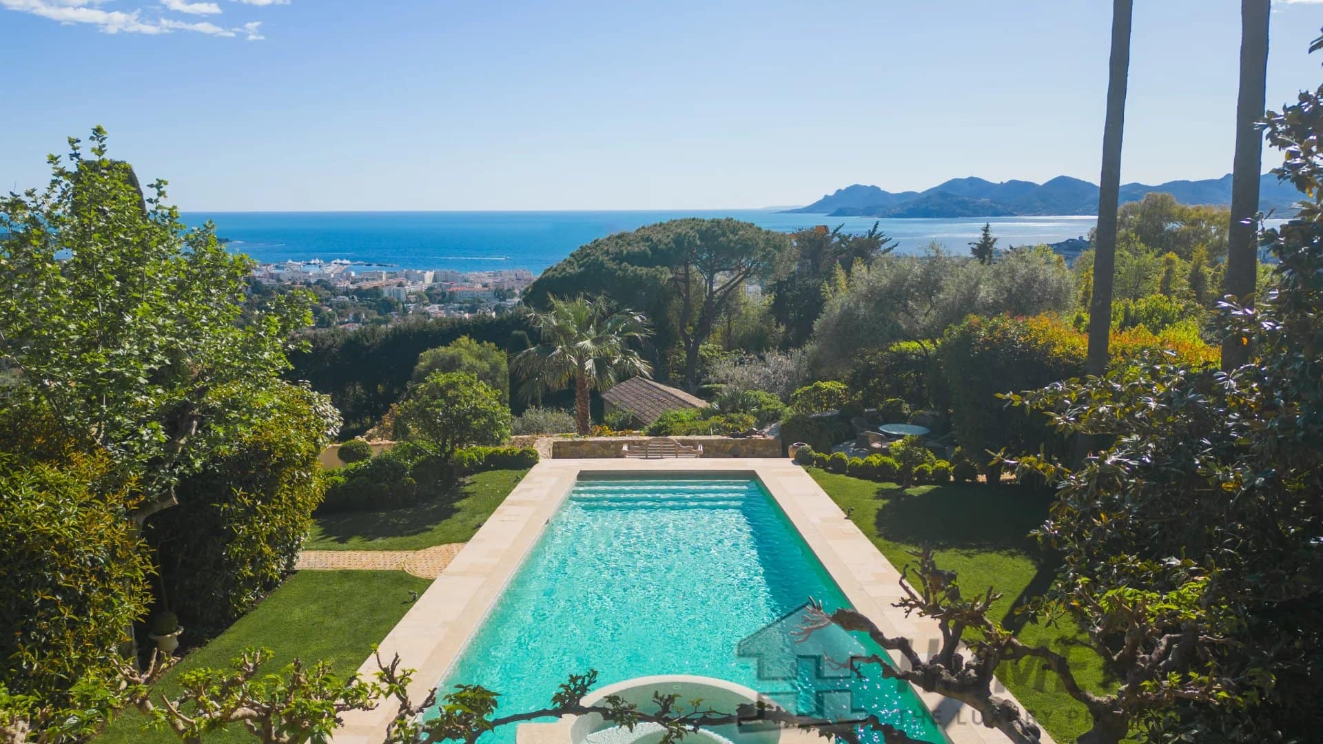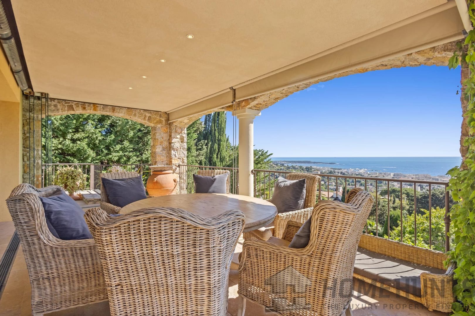 In the prestigious Corniche du Paradis, this exceptional stone villa stands as a testament to authentic Provencal charm while offering breathtaking panoramic vistas across the Bay of Cannes.