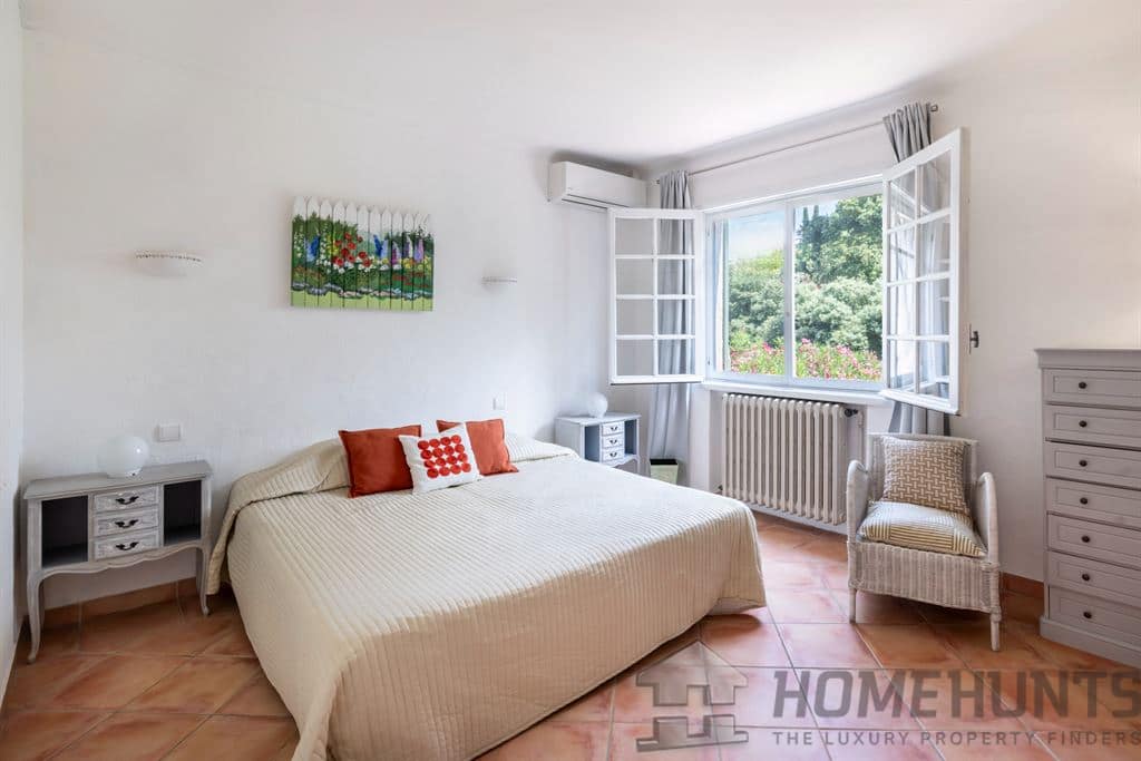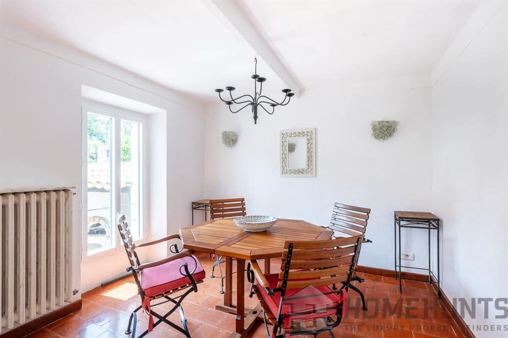 Surrounded by lush Mediterranean vegetation, the main villa features a spacious cathedral-ceilinged living room with fireplace, a Provencal-style kitchen, and three en suite bedrooms. One of the bedrooms is housed in a separate guest annex with independent access, ideal for hosting visitors.