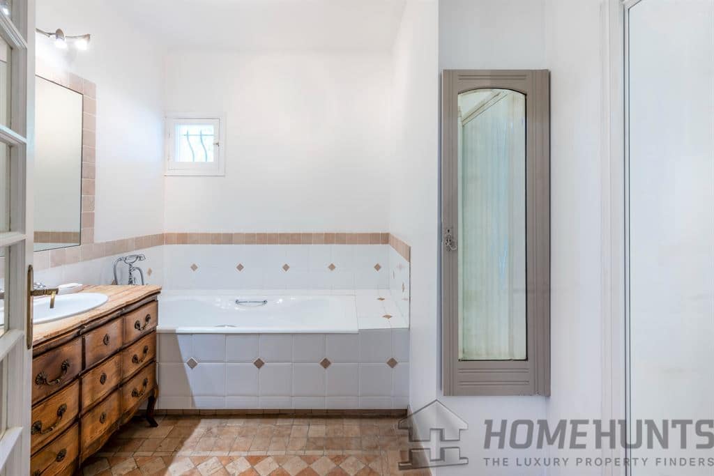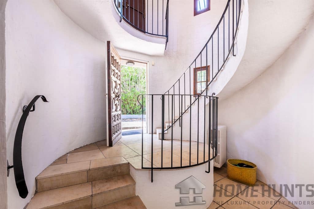 Traditional materials such as terracotta tiles, exposed beams and painted wooden shutters give the property its authentic charm. A distinctive architectural feature, the entrance turret gives the villa its unique character.