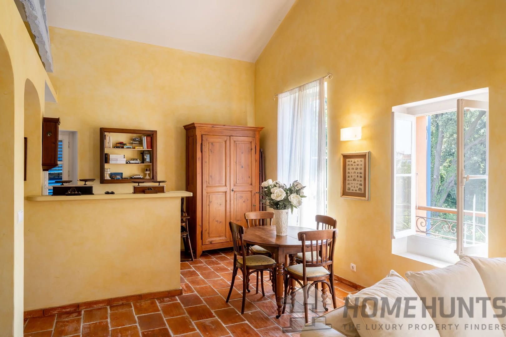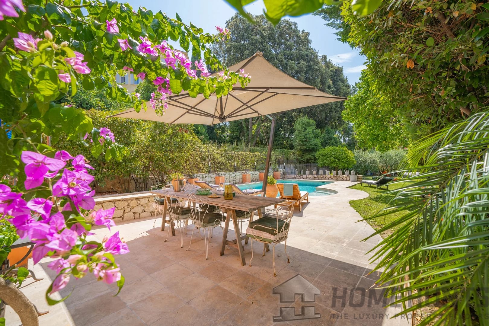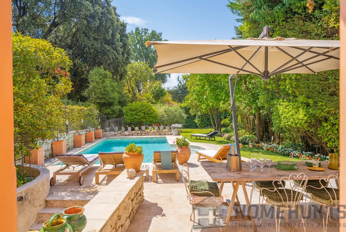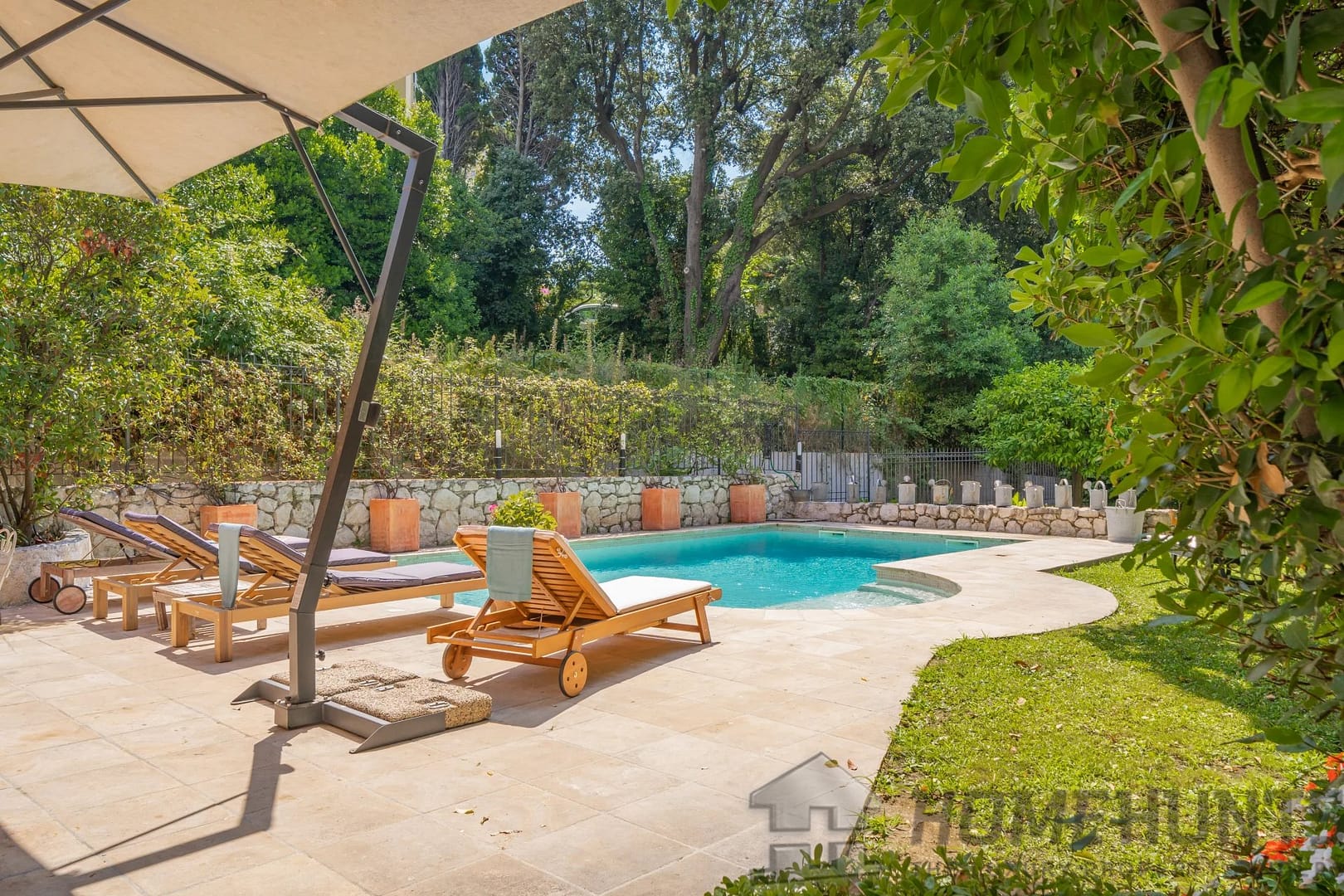 Outside, the landscaped garden features a swimming pool surrounded by relaxation areas, perfect for taking full advantage of the Cote d’Azur climate.
