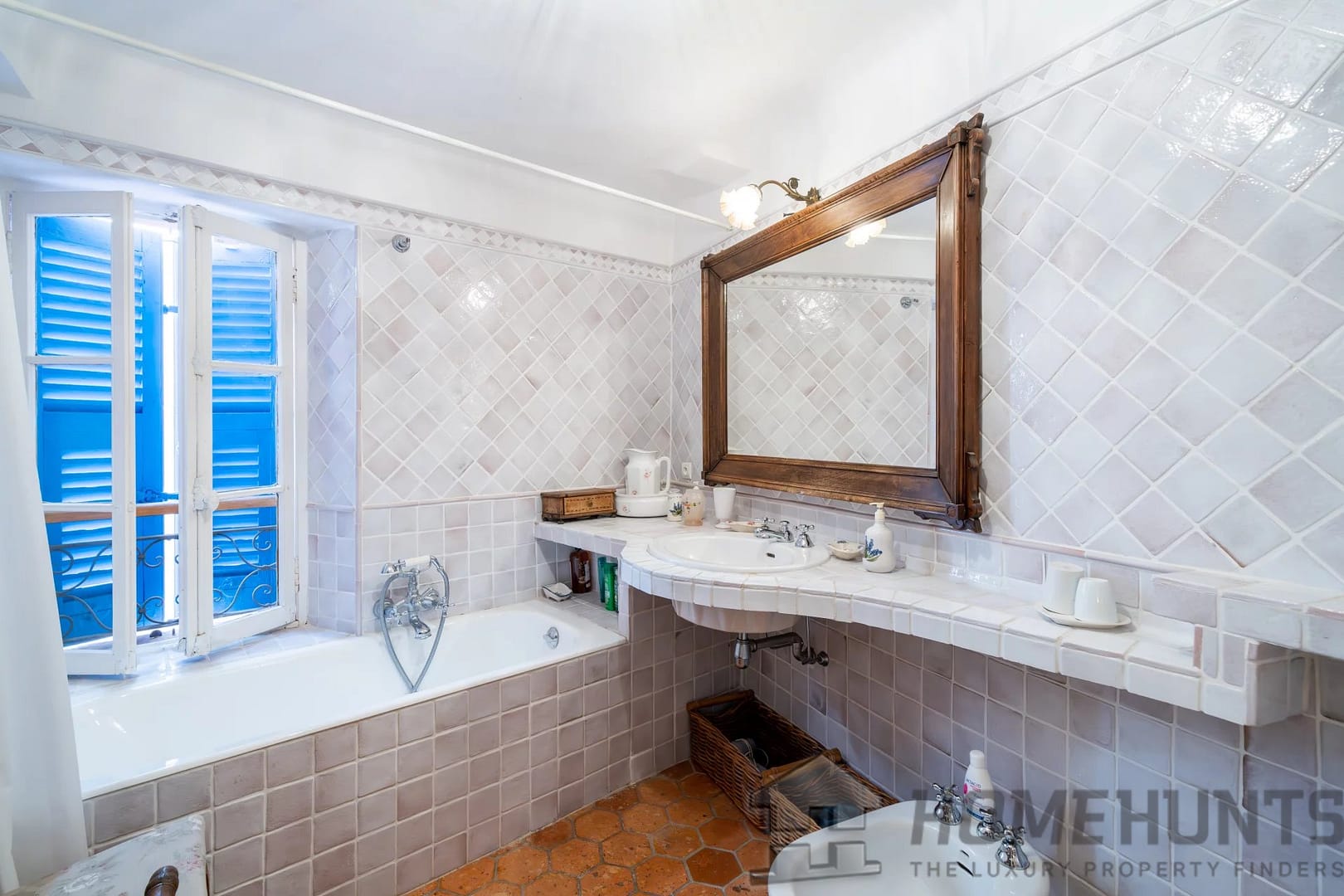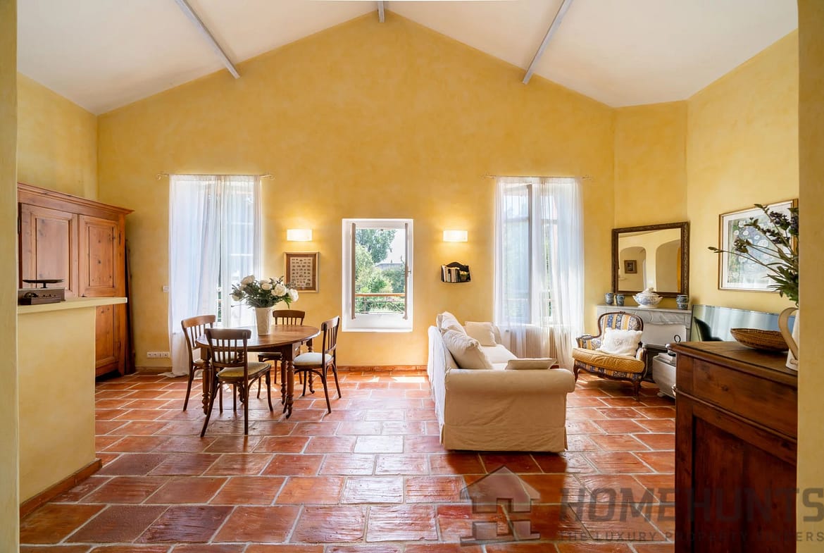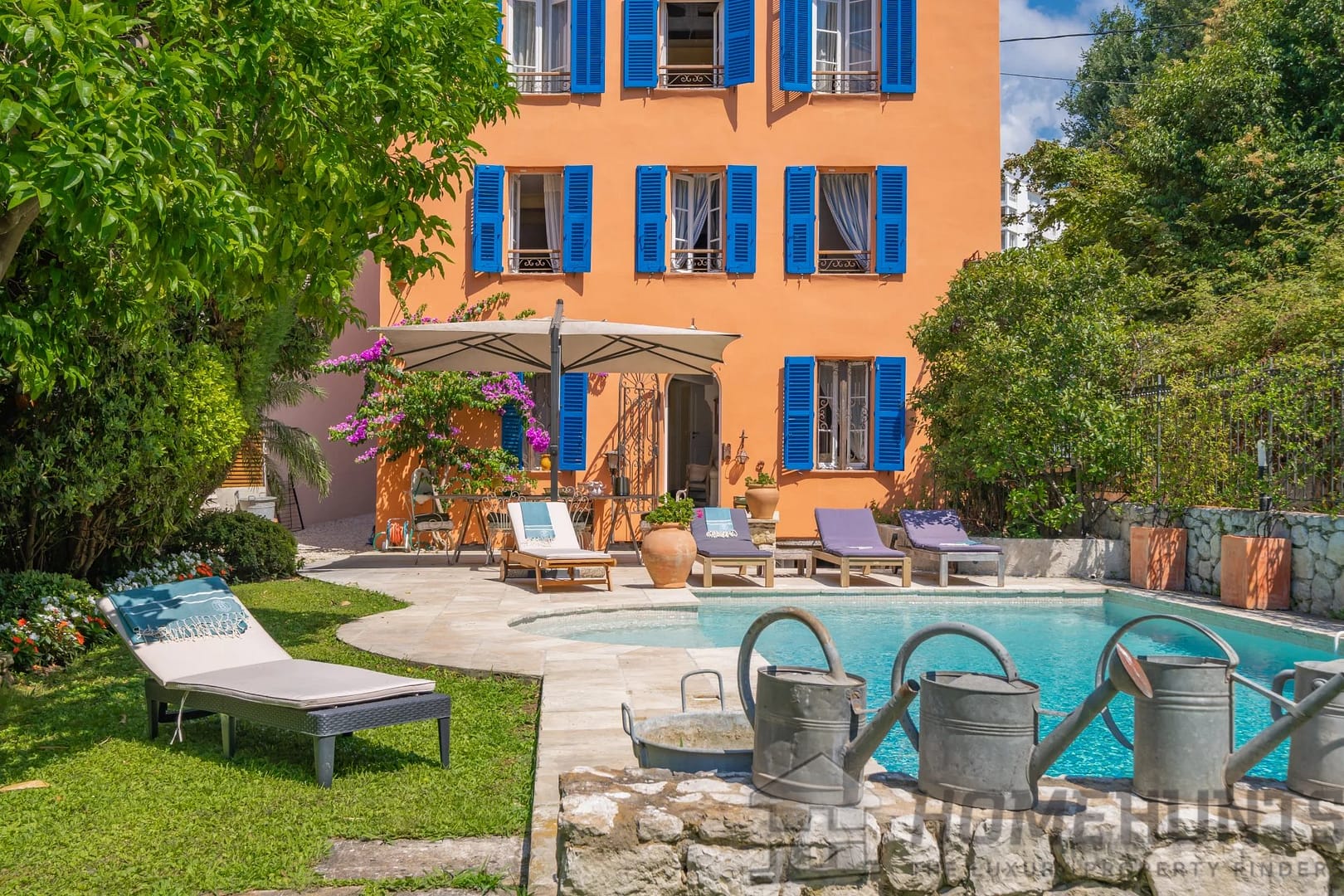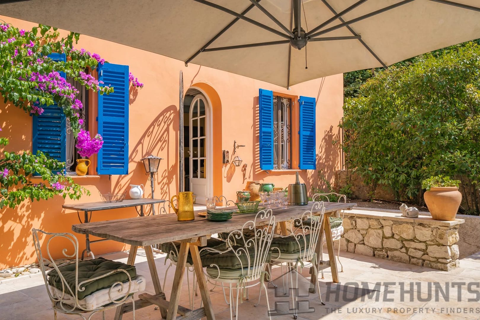 Outside, the landscaped garden features a swimming pool surrounded by relaxation areas, perfect for taking full advantage of the Cote d’Azur climate.