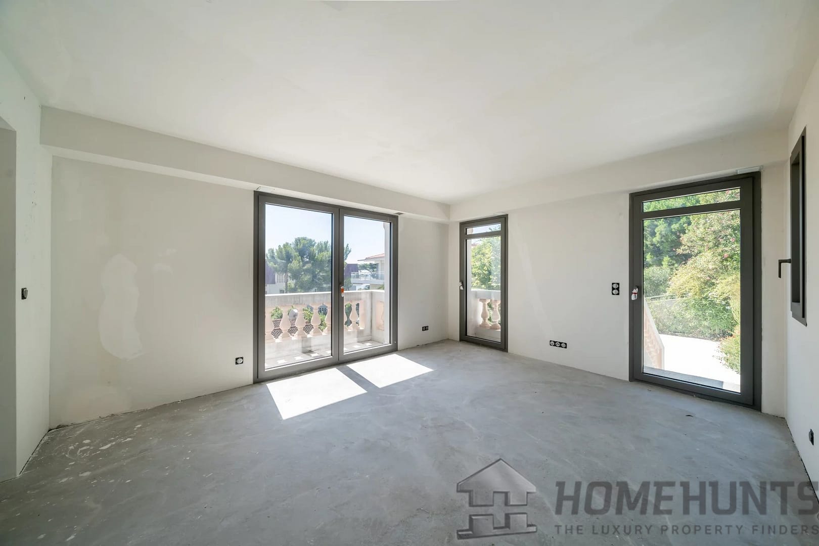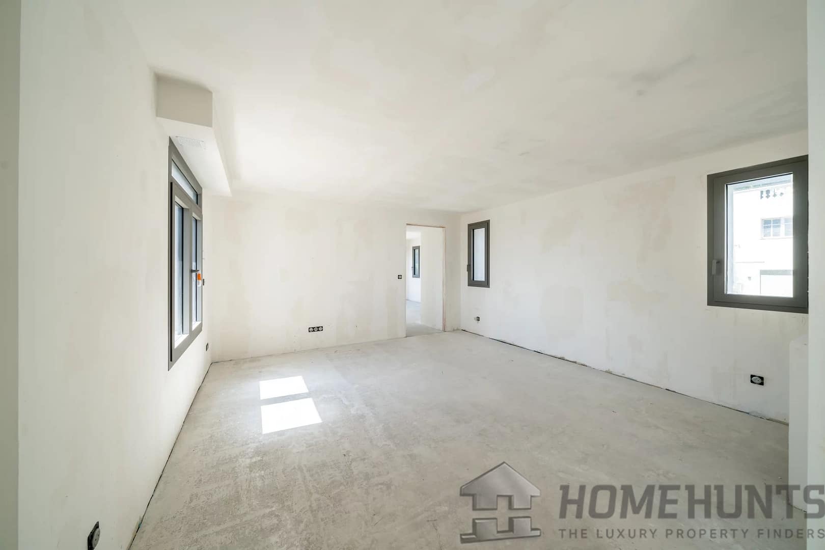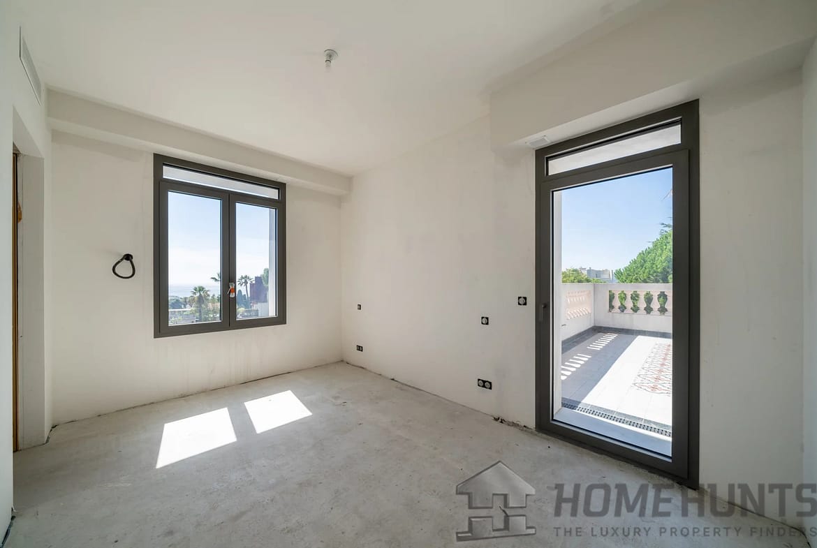 On the top floor, a fourth en-suite bedroom opens onto a spectacular rooftop terrace with breathtaking views of the sea and surrounding hills.