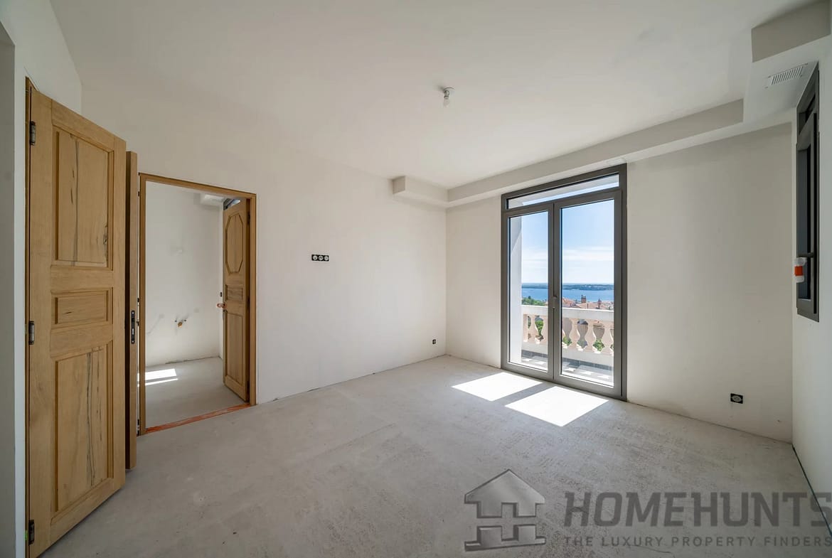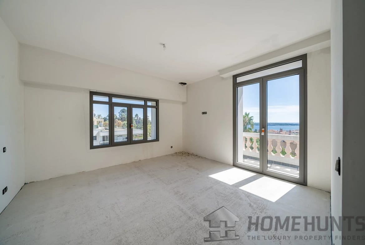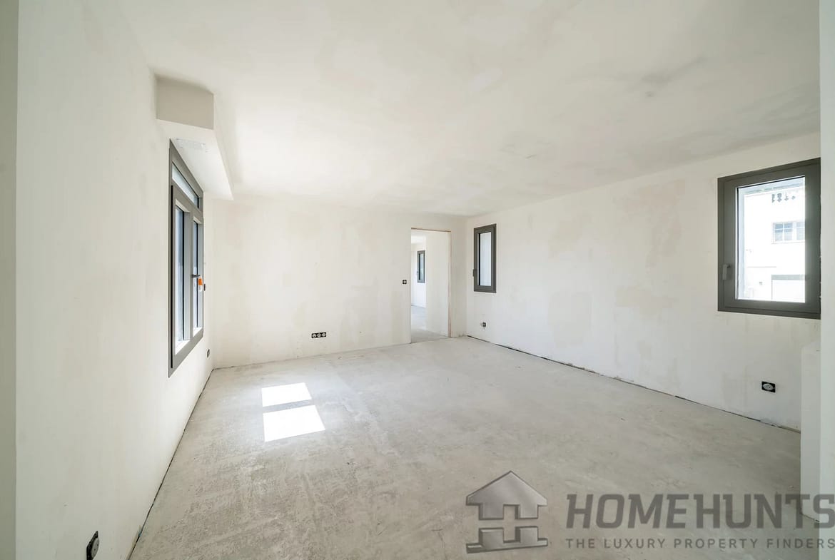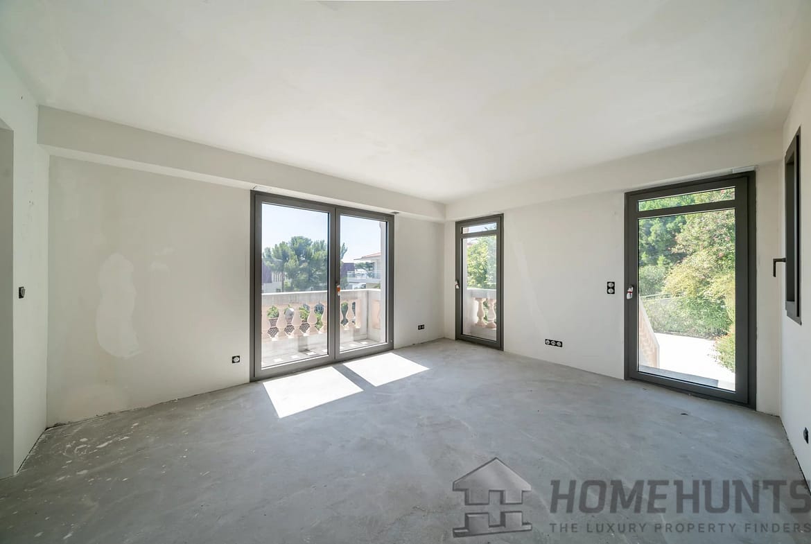 On the top floor, a fourth en-suite bedroom opens onto a spectacular rooftop terrace with breathtaking views of the sea and surrounding hills.