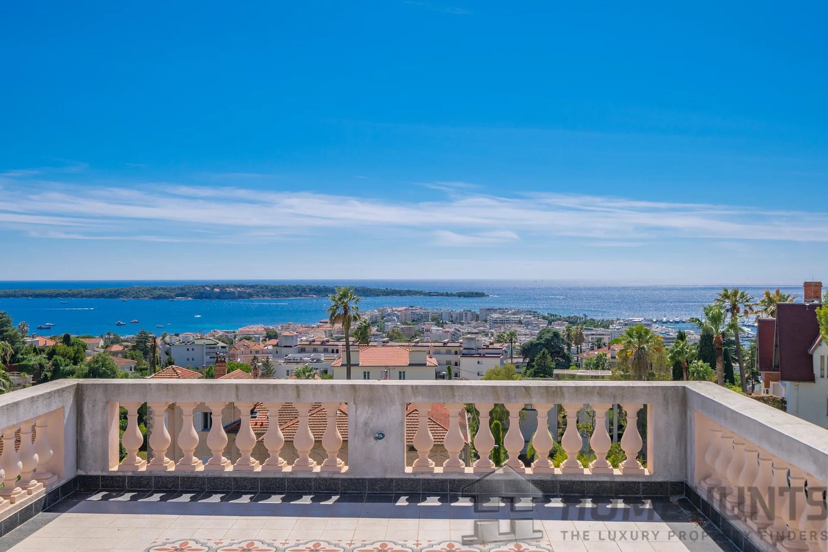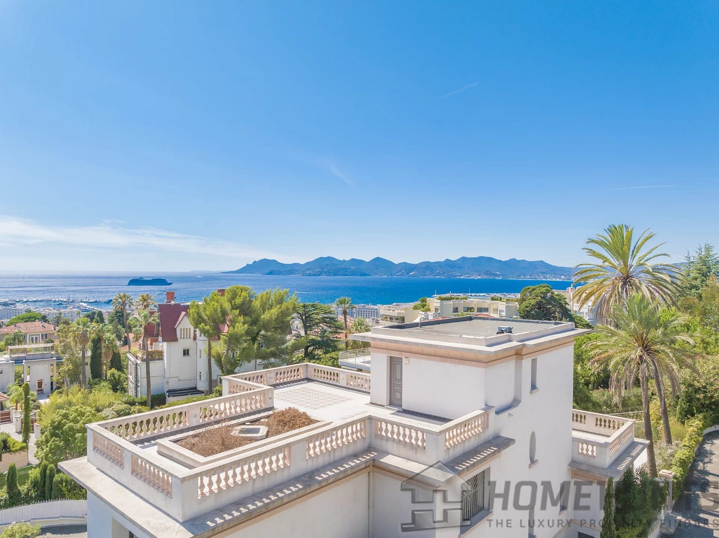 Fully renovated, it offers nearly 400 m2 of living space while preserving its original architectural charm. Nestled at the end of a quiet cul-de-sac, it enjoys full southern exposure and boasts panoramic sea views over the Bay of Cannes and the Lerins Islands.
