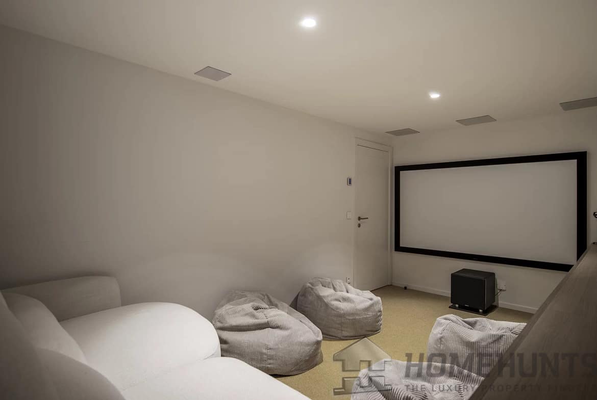 Garden level: Independent apartment with private entrance, kitchen, living room, en-suite bedroom, gym, and soundproofed cinema room