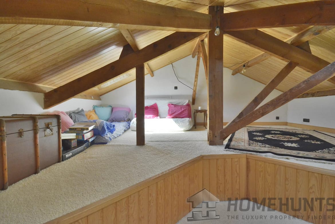 The fully equipped open-plan kitchen seamlessly integrates with the living spaces, while four generous bedrooms and three luxurious bathrooms provide optimal comfort. Additional features include a private office, functional laundry room, and a converted attic offering versatile living or guest space.