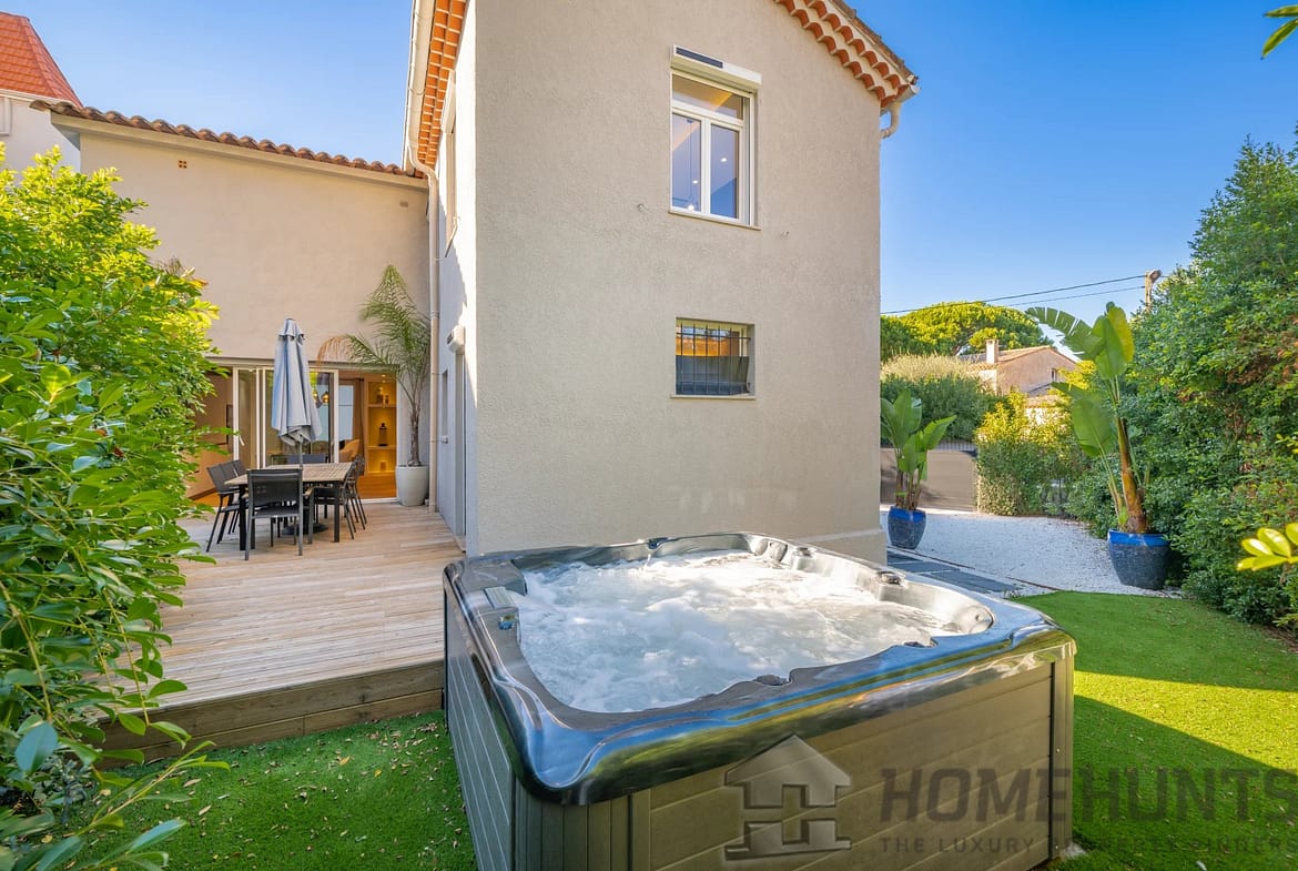 Outside, you’ll enjoy a lovely garden with jacuzzi and several parking spaces.