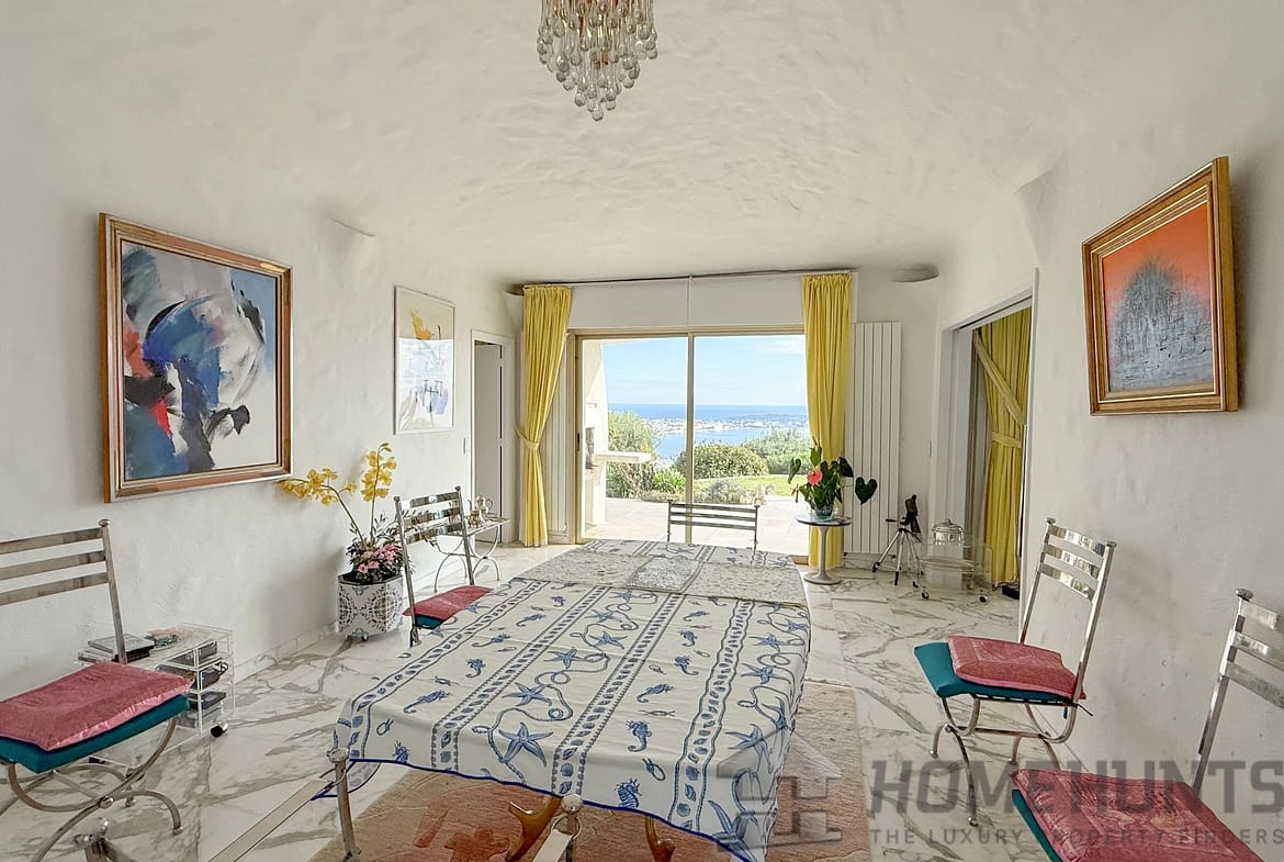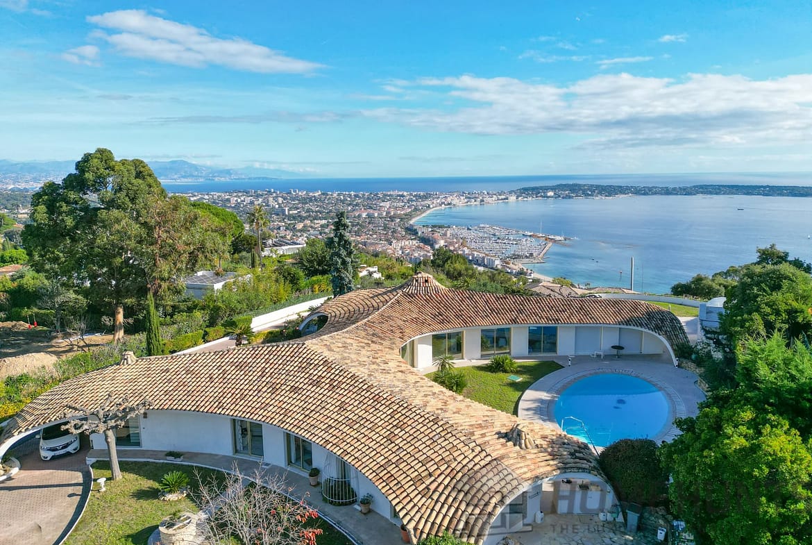 In the heart of the sought-after Super-Cannes residential area, this villa with its unique design enjoys a commanding position with breathtaking views stretching from the sea to the mountains.
