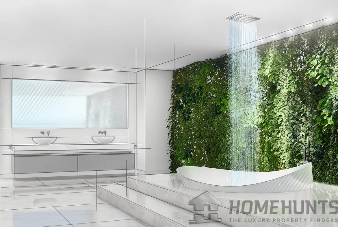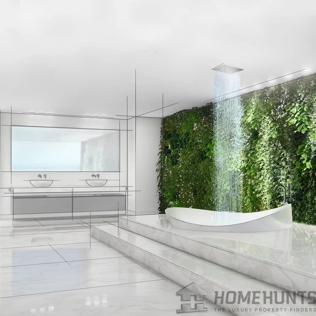 Sleek interiors, accommodation comprises a large living room with open-plan kitchen, three bedrooms with en suite bathrooms.