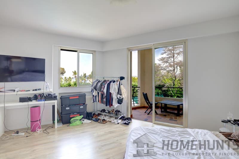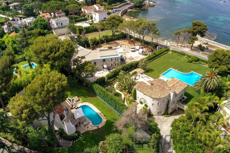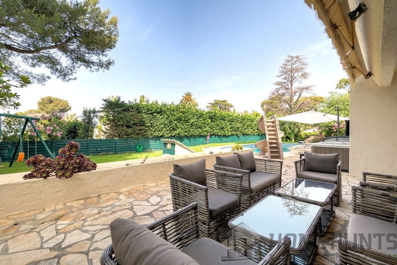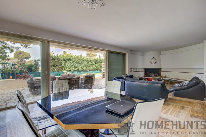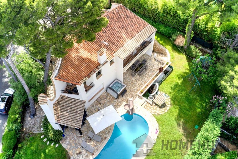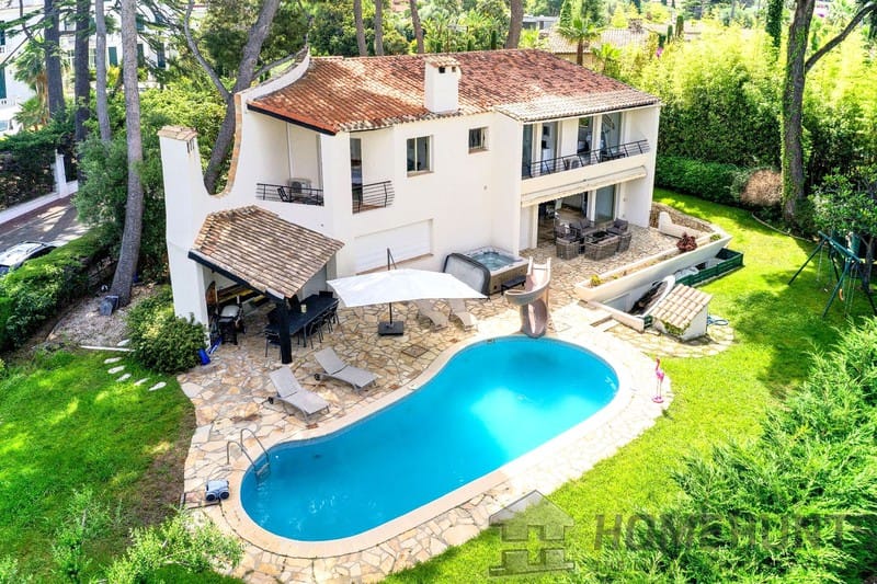 CAP D’ANTIBES, in a private estate on the west side of Cap d’Antibes, beautiful contemporary house from the 70’s built on two levels on a large basement of approximately 300m2 in total enjoying a beautiful sea view over the bay from Cannes.