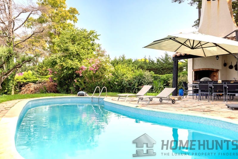 All built on a beautiful plot of flat garden of approximately 1200 m2 with swimming pool; this house includes an entrance hall with wc and dressing room, a living room of around 70 m2 with fireplace, an independent fitted kitchen, a bedroom on one level with bathroom and dressing room, upstairs, hallway, four bedrooms with en-suite bathroom including 3 bedrooms opening onto a terrace with sea view.
