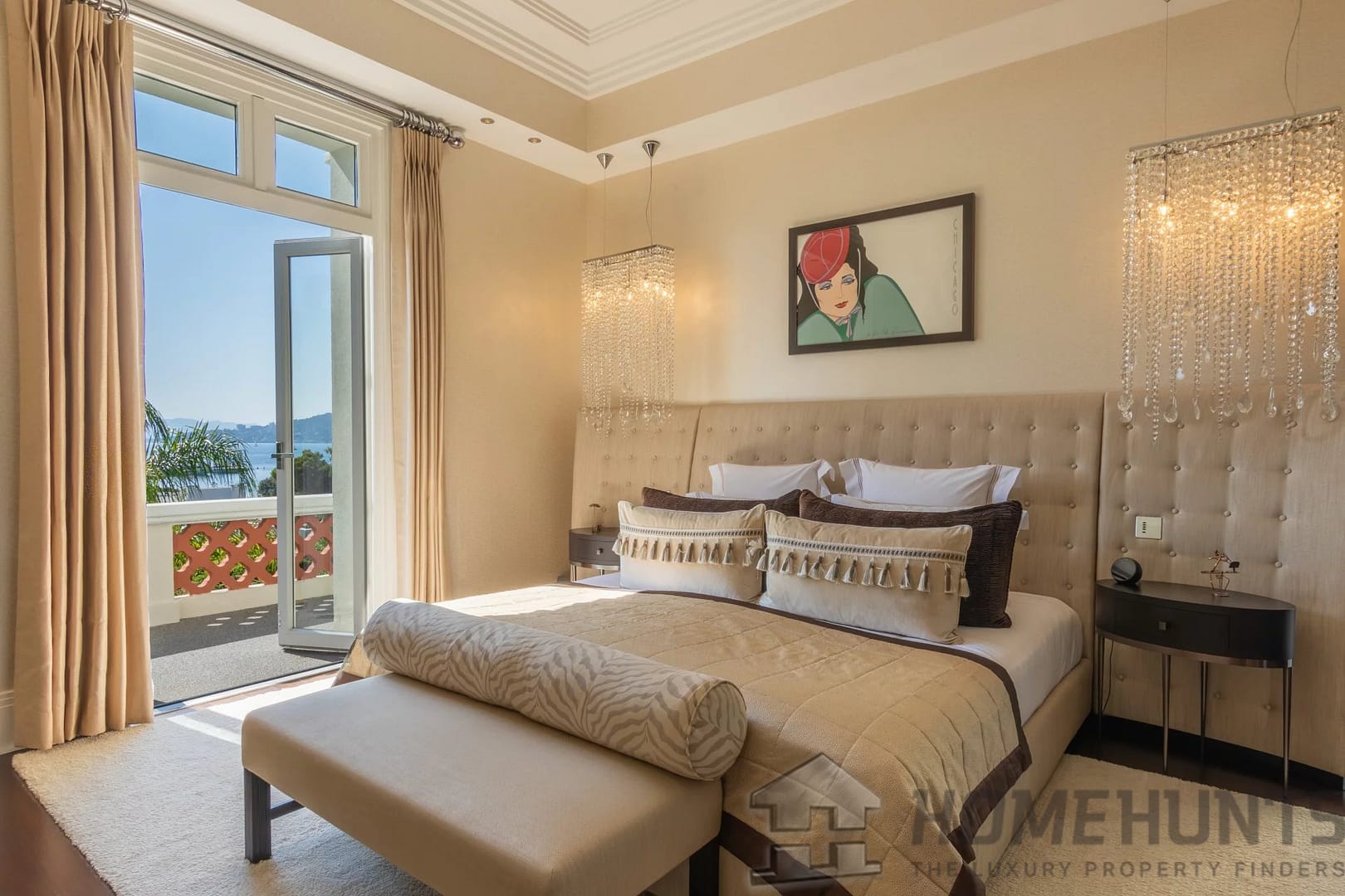 Master bedroom of approximately 100m2 with balcony and sea view, living room, dressing room and luxurious bathroom.