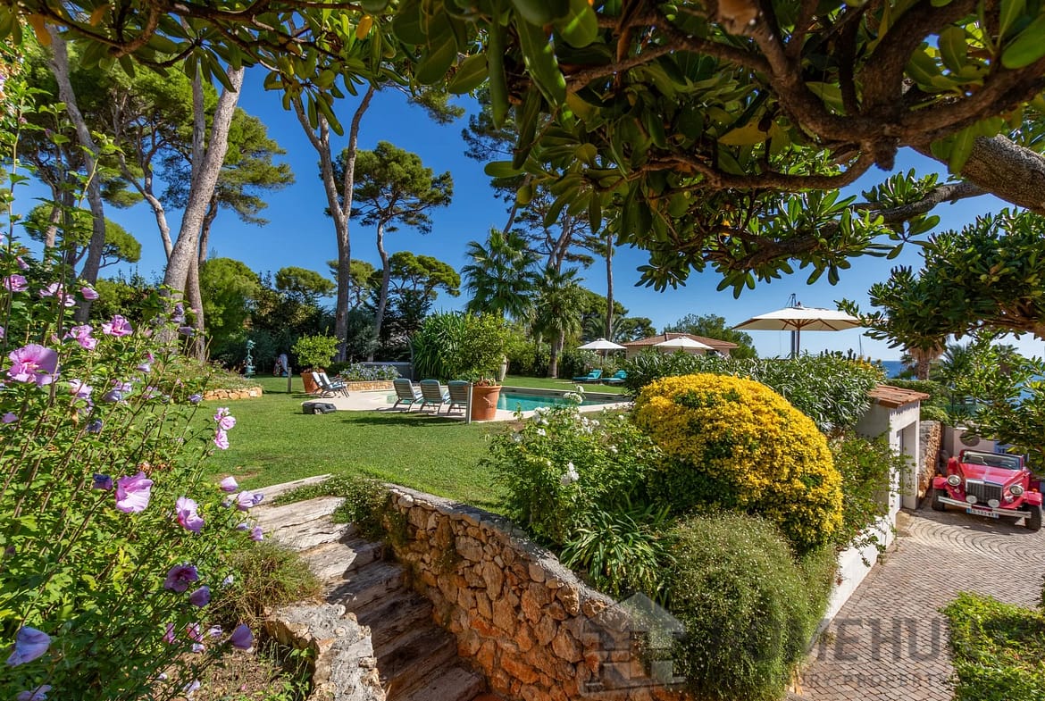 The driveway set behind large gates offers space to park 4 cars. The fully landscaped and enclosed gardens are dotted with palm and umbrella pine trees.