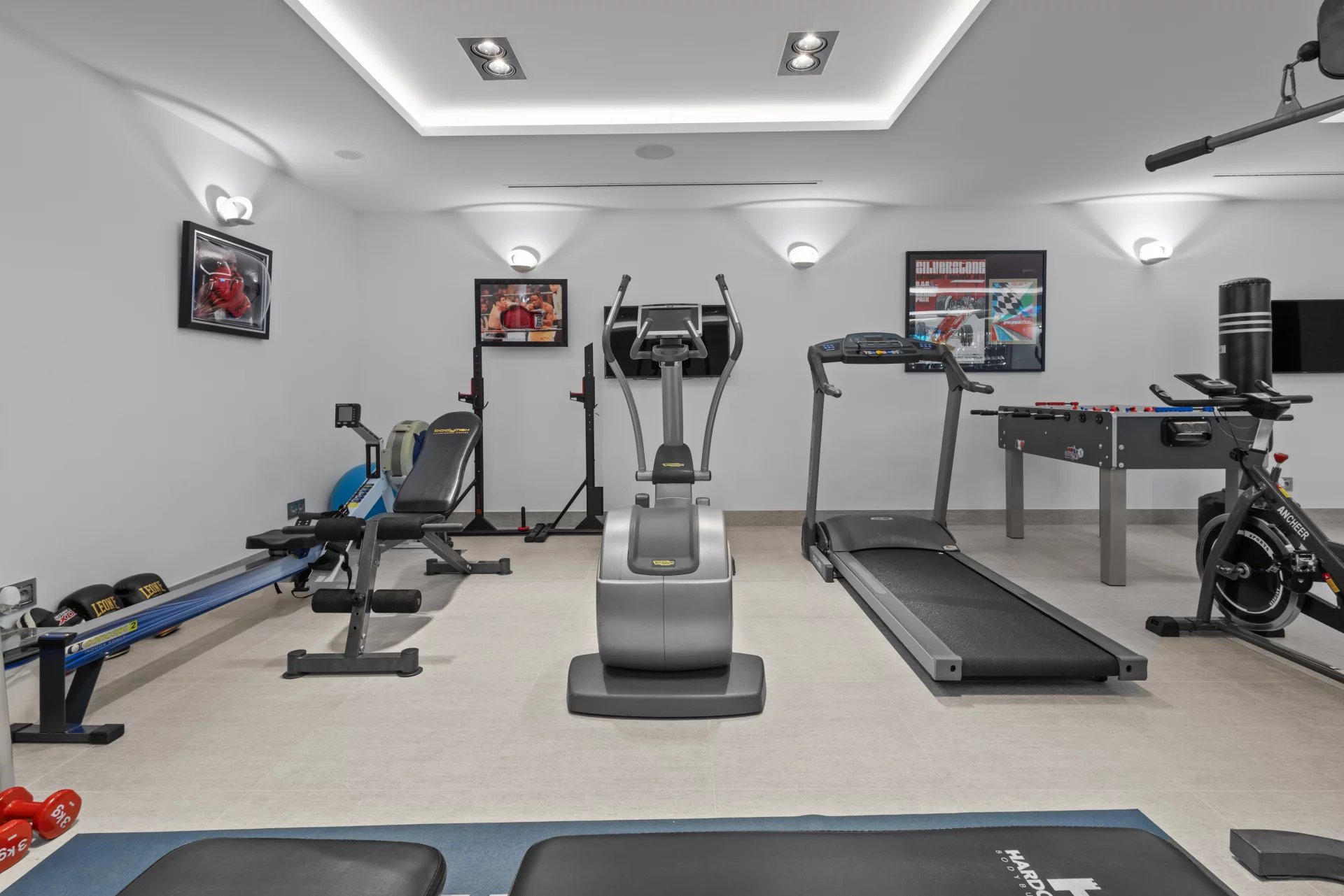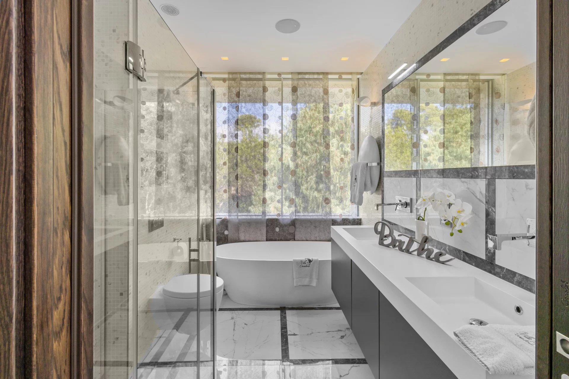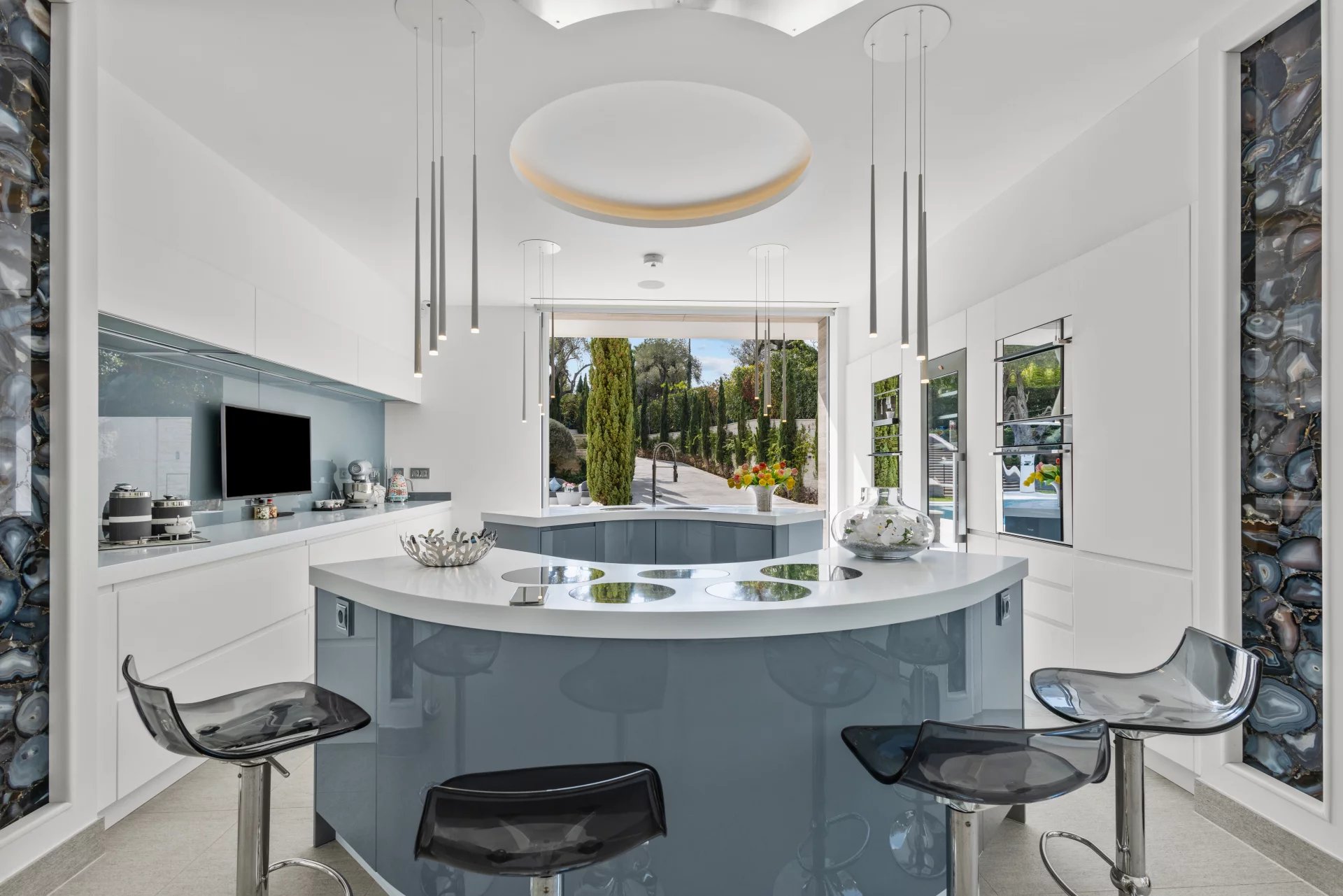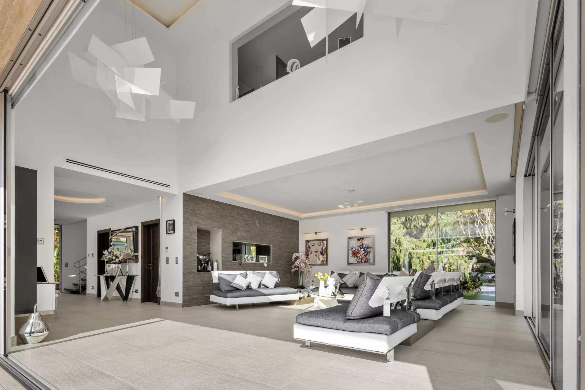 Basement: a vast garage for eight vehicles with elevator, a home cinema, a wine cellar and a fitness area. Two other bedrooms for guests or staff with bathroom. Laundry and storage.
