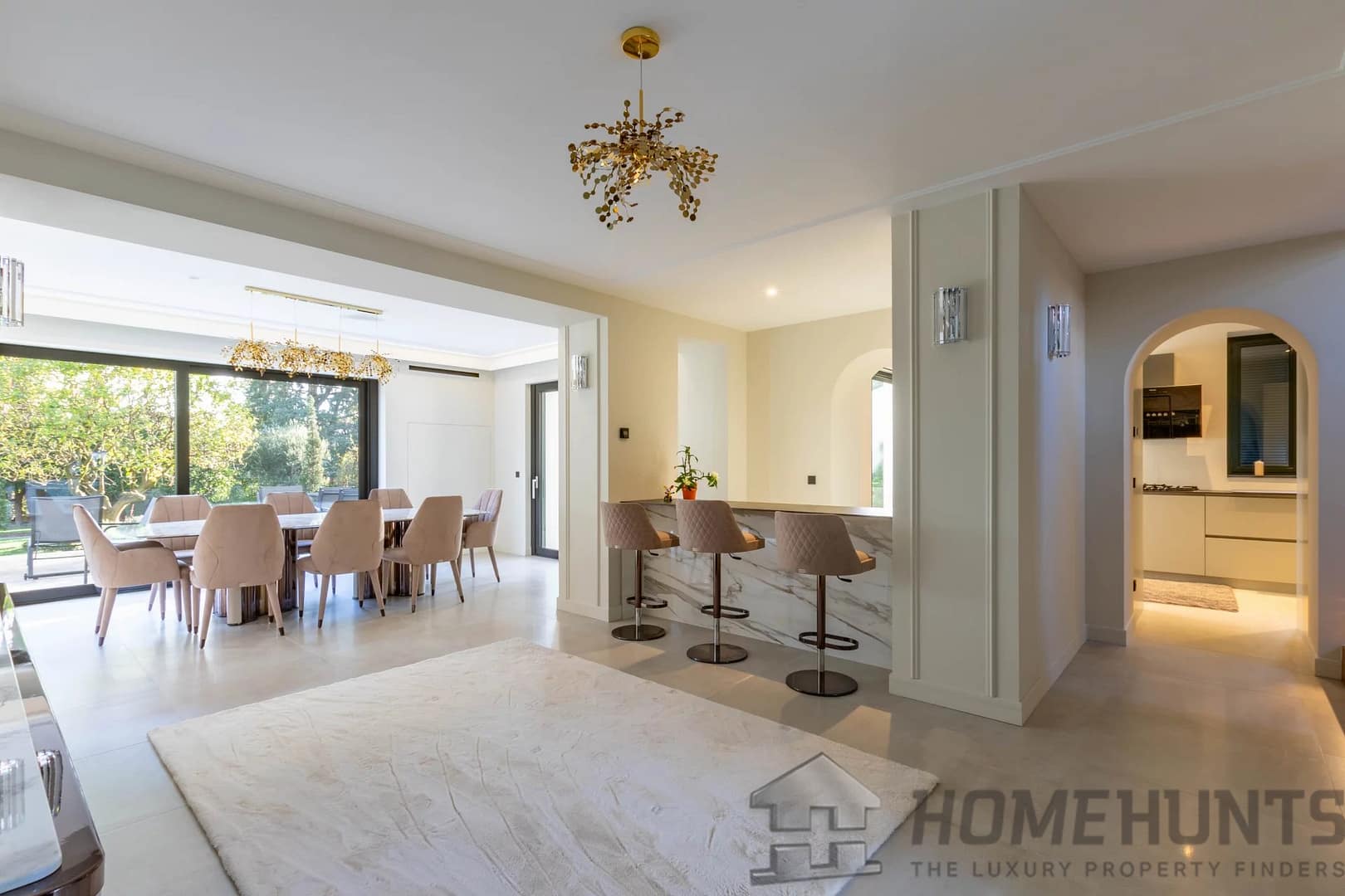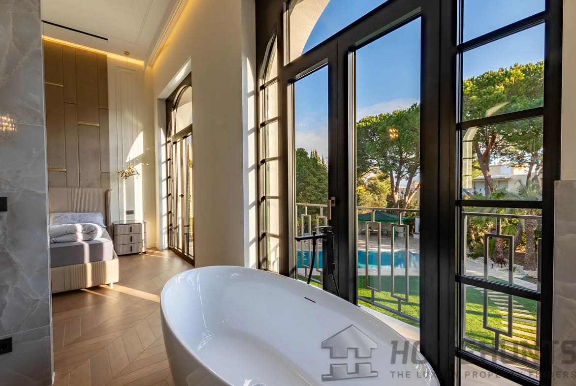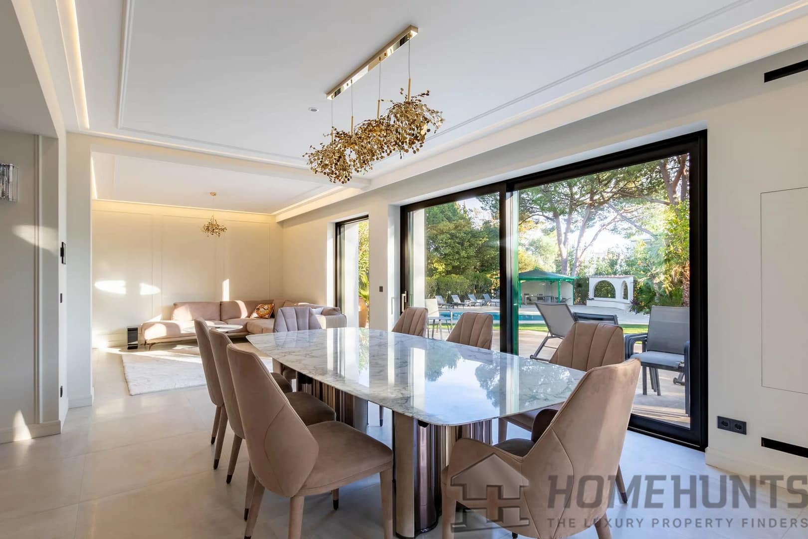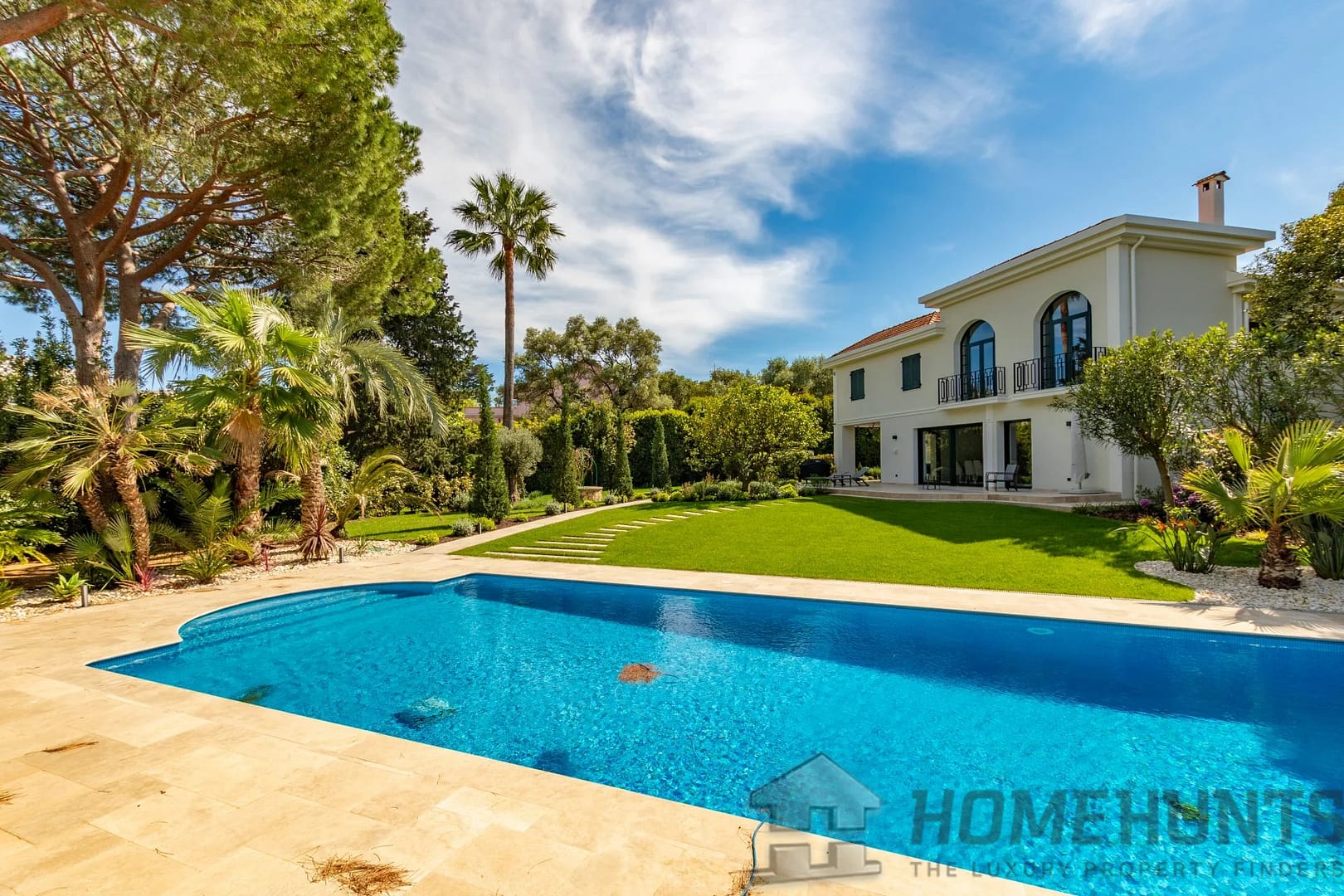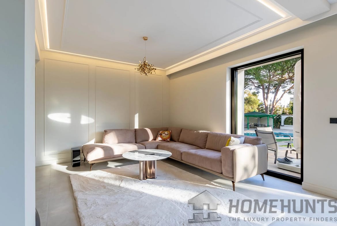 Located in Cap d’Antibes, close to the beaches, this villa of about 300 sqm was renovated in 2023 with quality materials and offers high-end services.