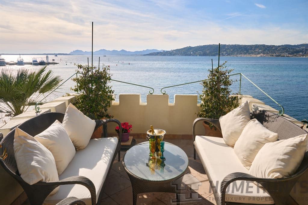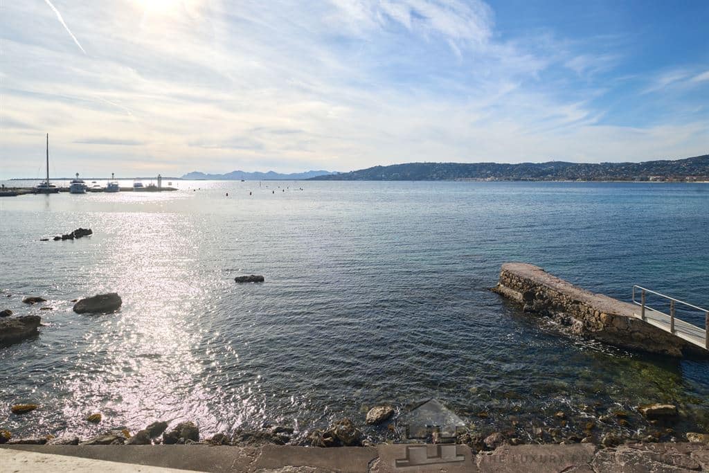 The villa’s lush landscaped garden is a true haven of peace, featuring a double heated infinity pool, a pool house, and expansive panoramic terraces. The sea views stretch from the bay of Juan-les-Pins to the Lerins Islands.
