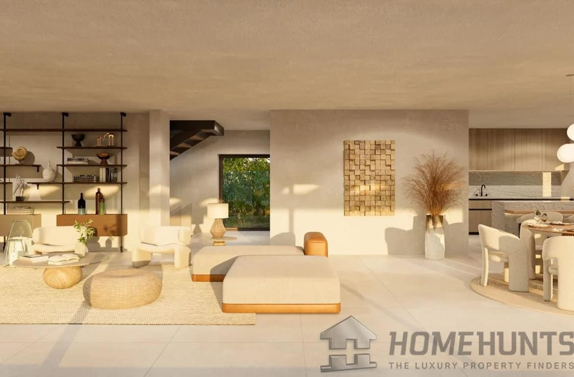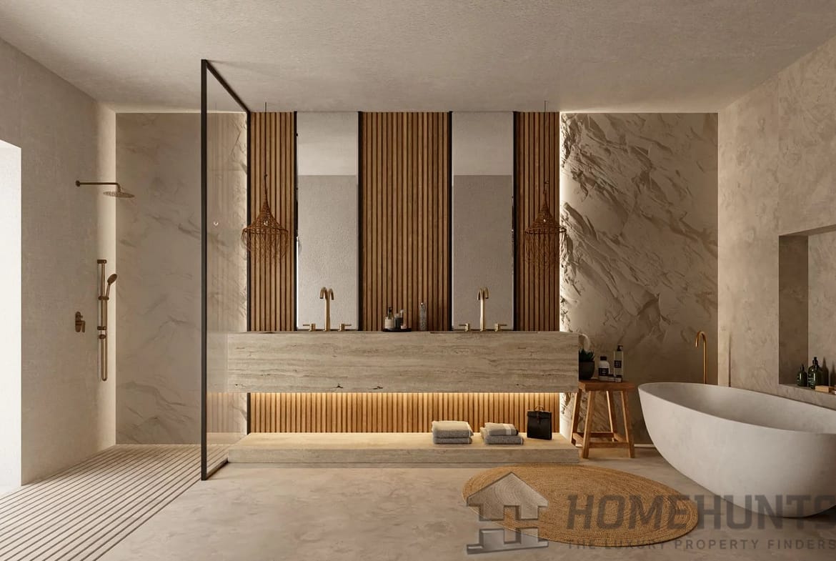 Each villa features four spacious bedrooms and four luxurious bathrooms, providing exceptional living space. The open-concept kitchen is seamlessly integrated into the design, creating a flowing, light-filled environment. The soaring ceilings bring a sense of spaciousness and grandeur, while the intelligent layout places all rooms on a single floor, depending on the villa, on the first or second floor.
