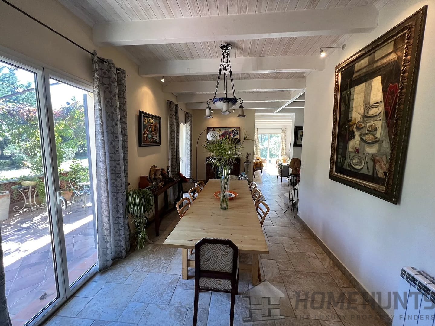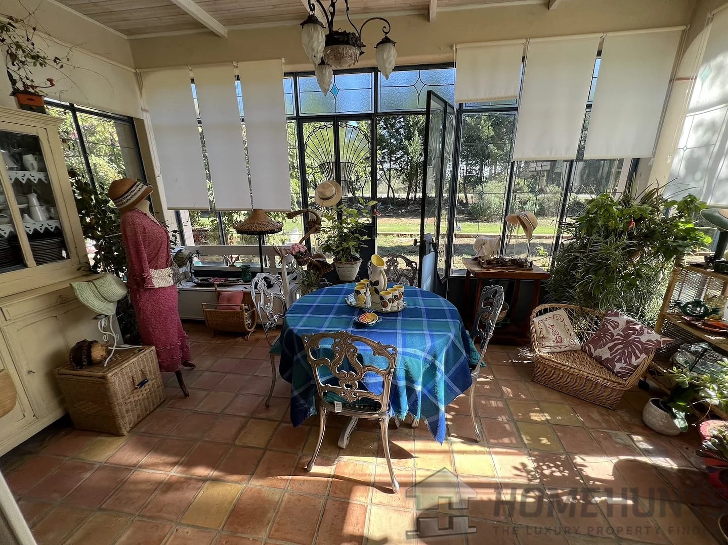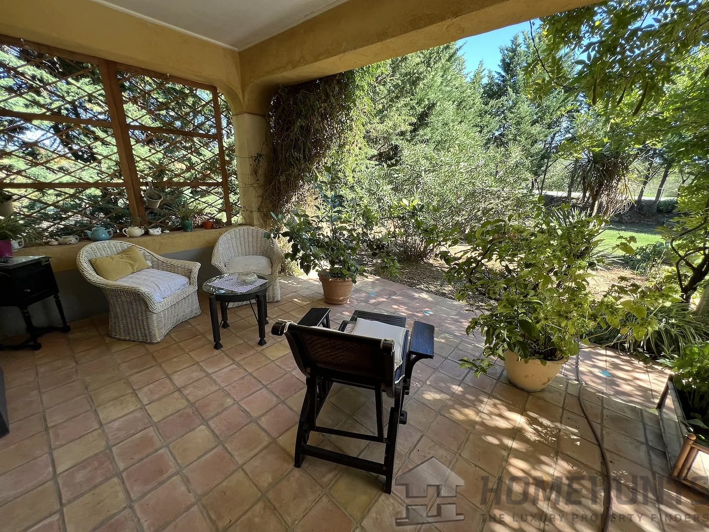 Privacy, south exposition, it’s light and pleasant. Beautiful entrance with office space, comfortable living room with a beautiful chimney, winter garden, dining room with wood stove, large shaded terrace on the south with its pergola, storage room, 1 main bedroom with private shower room, dressing room, toilet.
