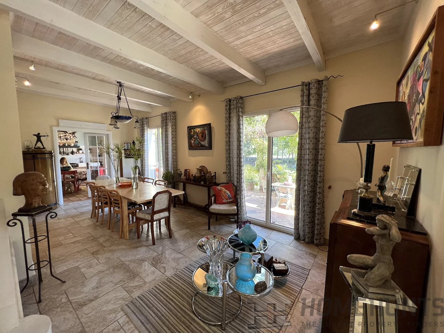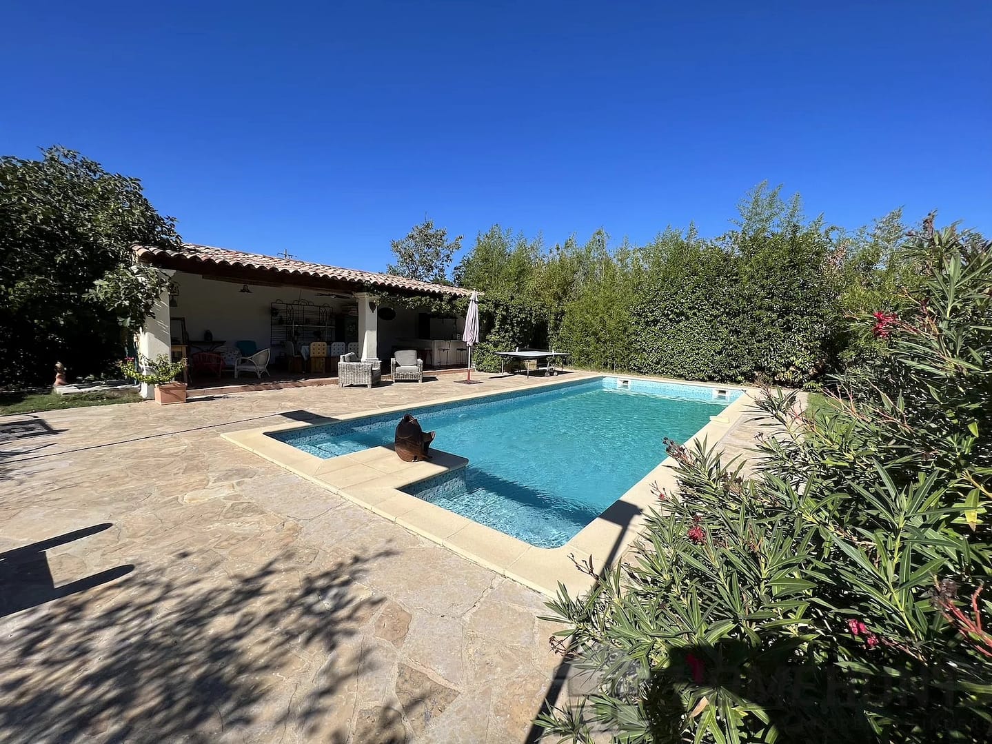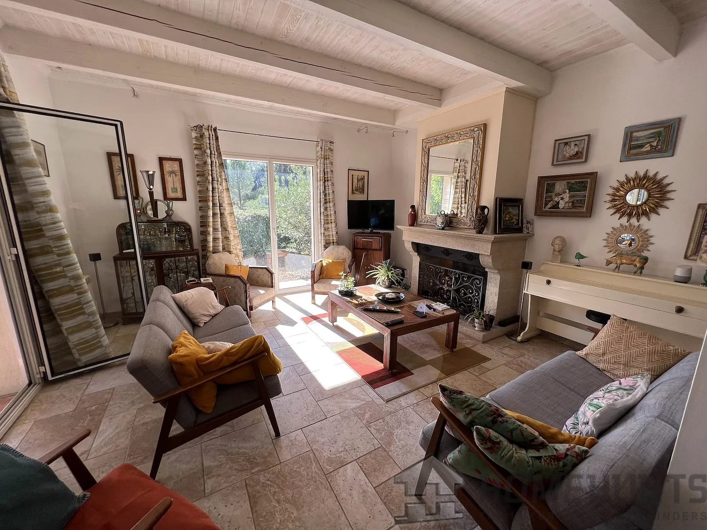 Privacy, south exposition, it’s light and pleasant. Beautiful entrance with office space, comfortable living room with a beautiful chimney, winter garden, dining room with wood stove, large shaded terrace on the south with its pergola, storage room, 1 main bedroom with private shower room, dressing room, toilet.