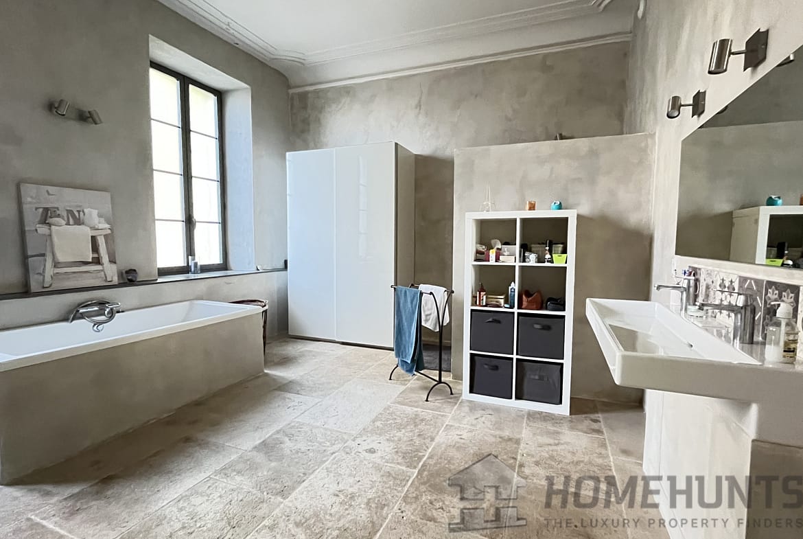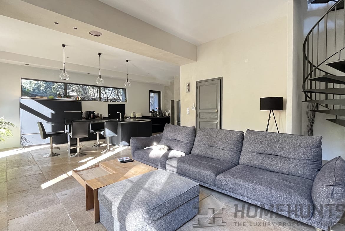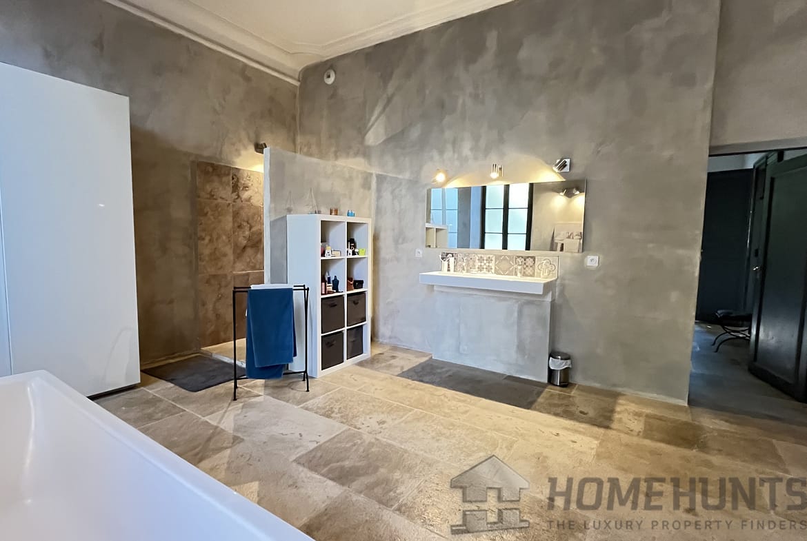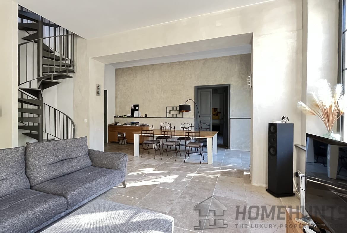 With 500 m2 of living space spread over 3 levels, it offers very generous volumes with very high ceilings and pleasant and bright living rooms.