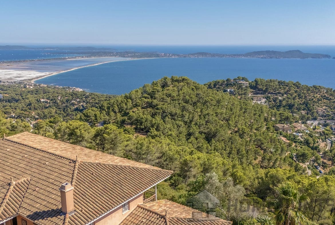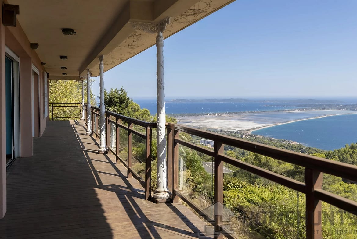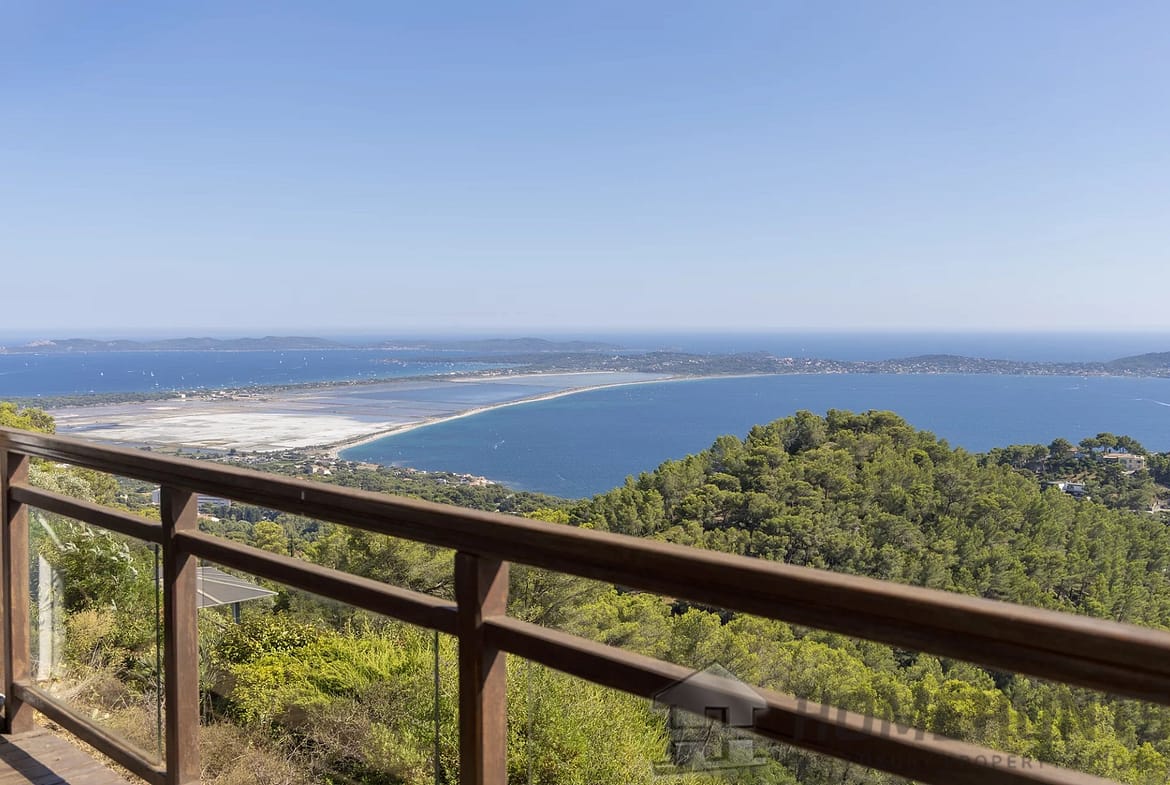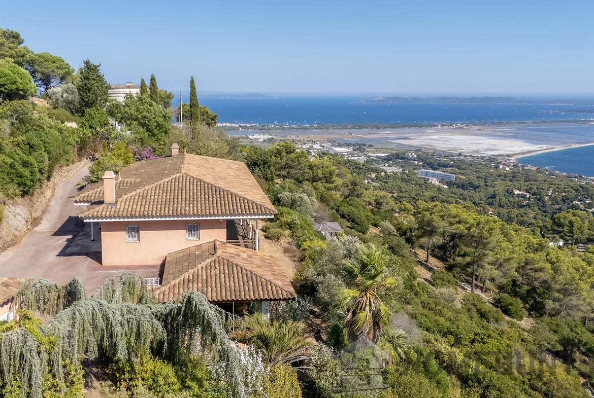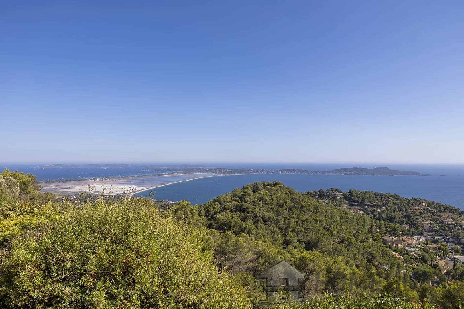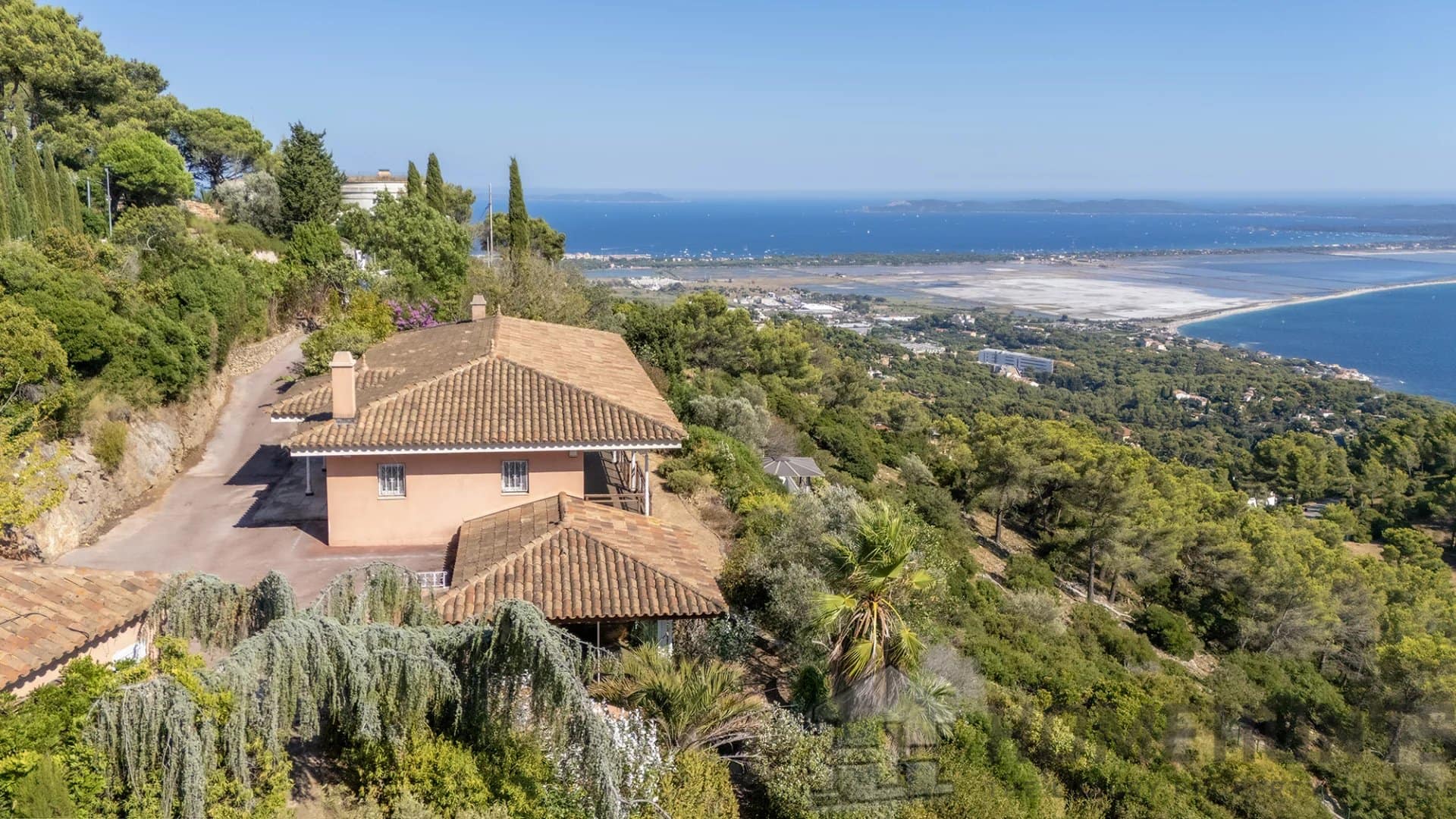 Set in the highly sought-after La Californie district of Carqueiranne, this architect-designed villa of 300 m2 (built in 1998) enjoys a privileged position on a 2,900 m2 landscaped plot, offering complete privacy and sweeping views over the Giens Peninsula, Porquerolles Island, and the port of Carqueiranne.