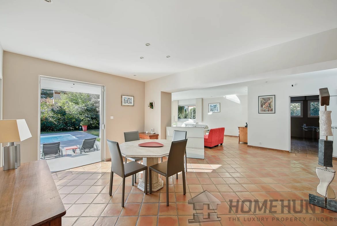 The property features a 60 m2 living room opening directly onto the garden, creating a bright and fluid indoor-outdoor living space.