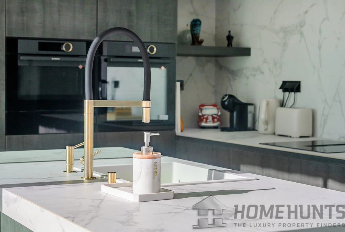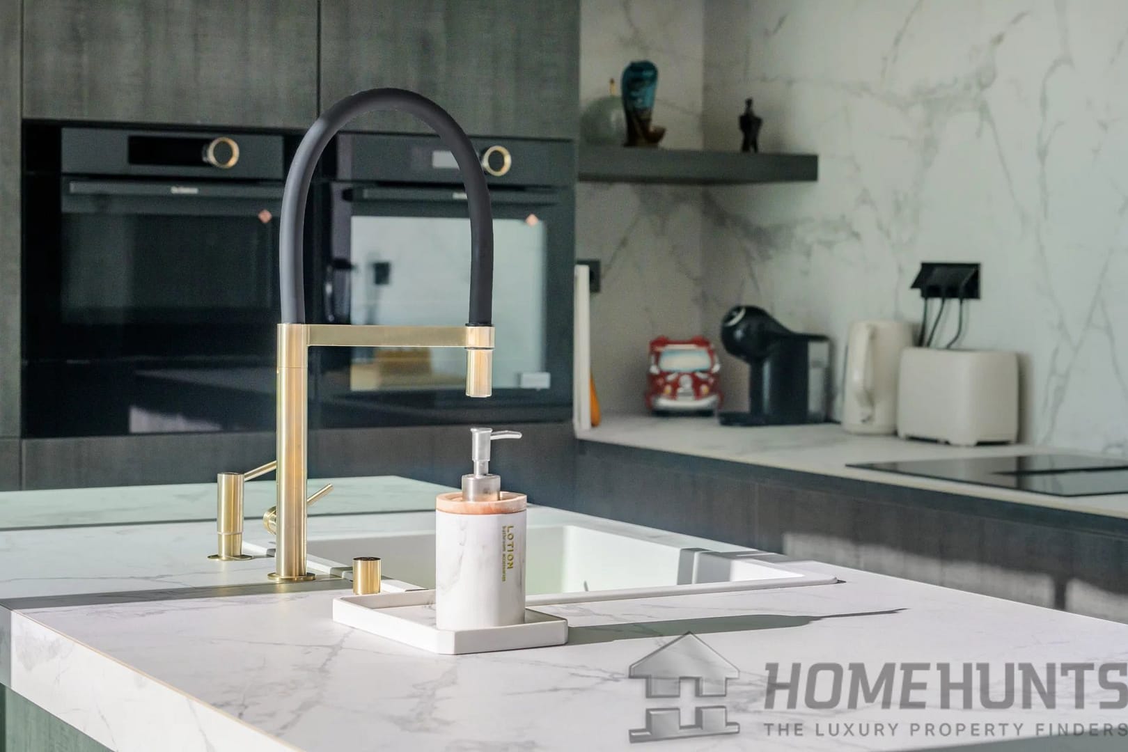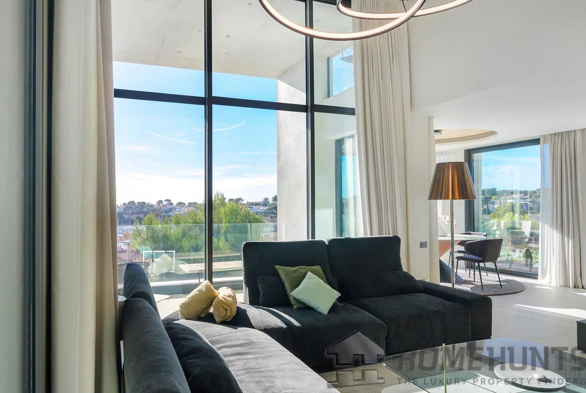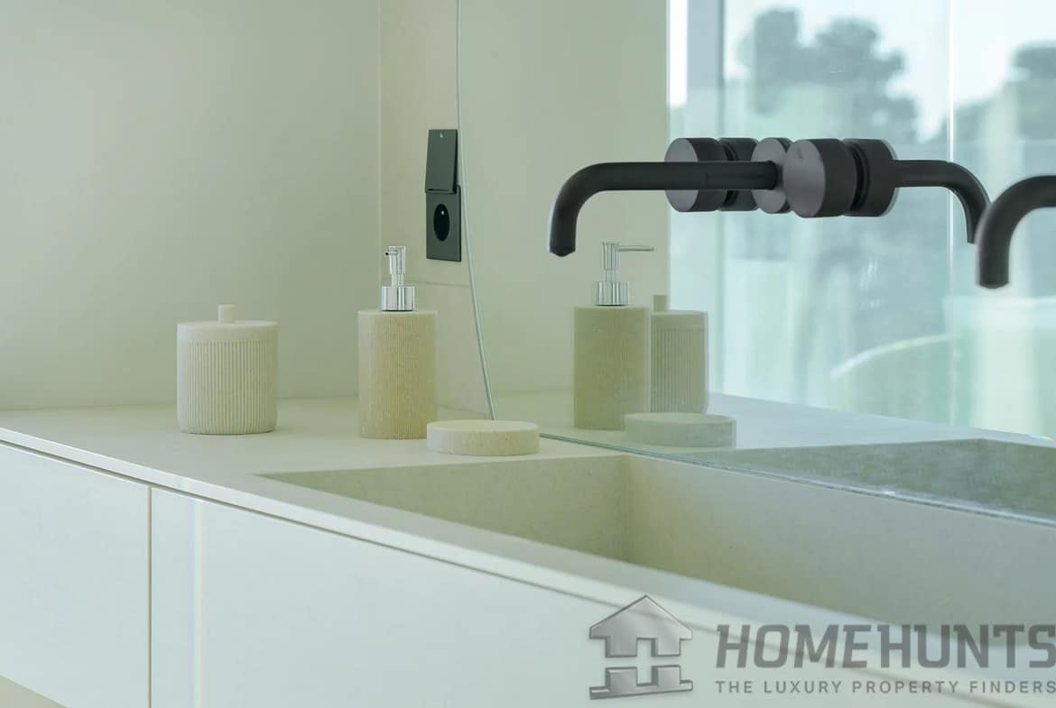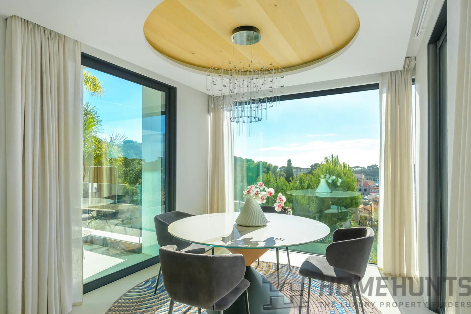 Once inside this stunning family home you are welcomed by a majestic entrance hall featuring a glass elevator shaft. This level includes a private office with a porthole overlooking the pool, a fully equipped gym with a dedicated spa area featuring a jacuzzi, sauna, and shower, a state-of-the-art home cinema with a retractable screen and large TV, a games room, and a spacious 50 m2 garage.