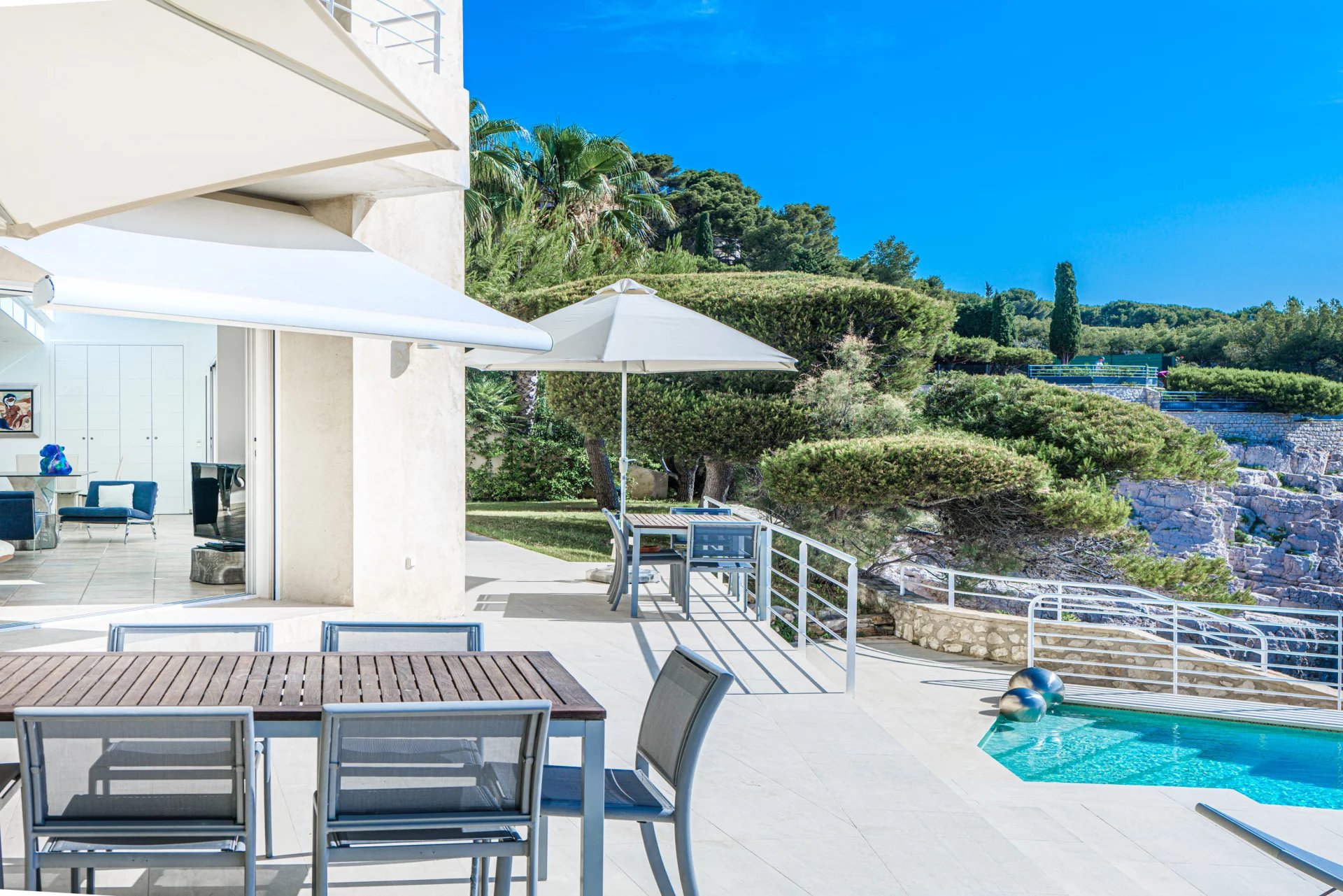 The villa offers a rare quality of view and quality of life. It’s close by, yet sufficiently overhanging to enjoy all the advantages of such a location. To complement the property, the owners are willing to sell a berth in Cassis.