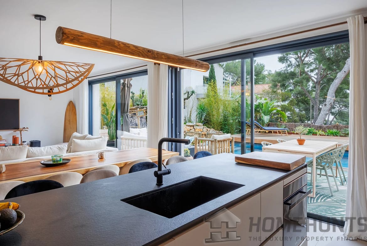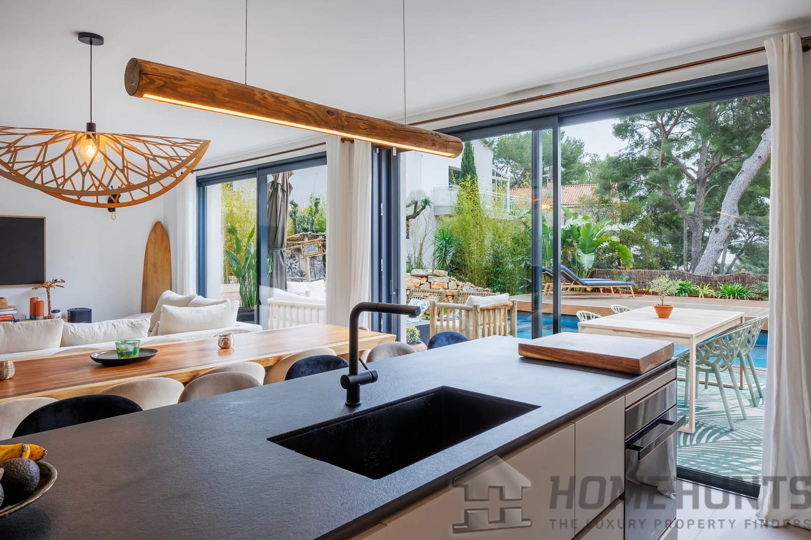 A ground floor designed for the exceptional: The living space opens onto a large living room, harmoniously extended by a modern kitchen where every detail has been designed to enhance the culinary experience. A view of the sea from the first glance reinforces the magic of the place.