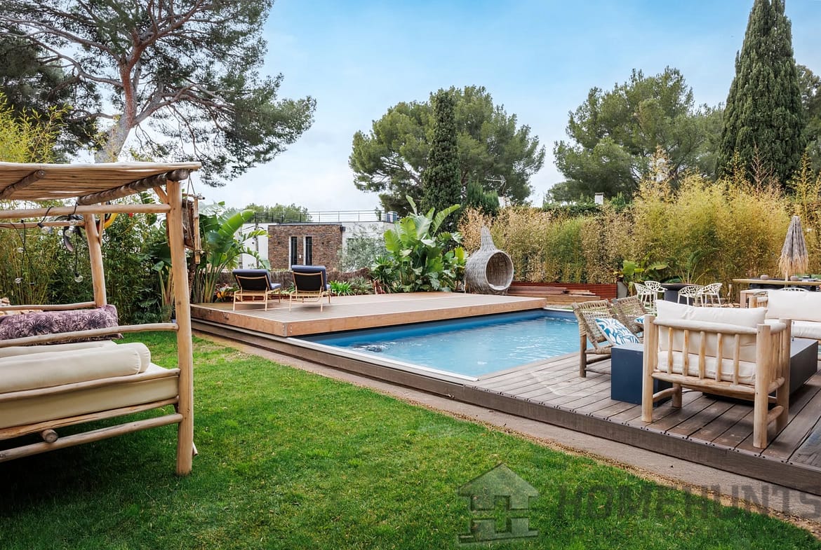 An exterior designed for relaxation and conviviality: Located on a landscaped plot of 500m2, this villa reveals a true haven of peace, where each space has been carefully designed for well-being.