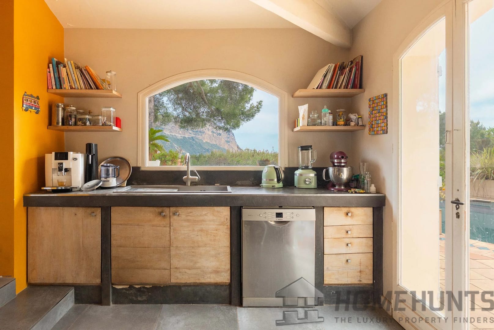 – A fully equipped dining kitchen also enjoying sea views, with access to a second expansive terrace overlooking the swimming pool