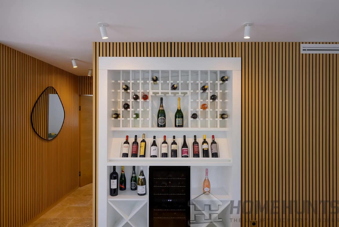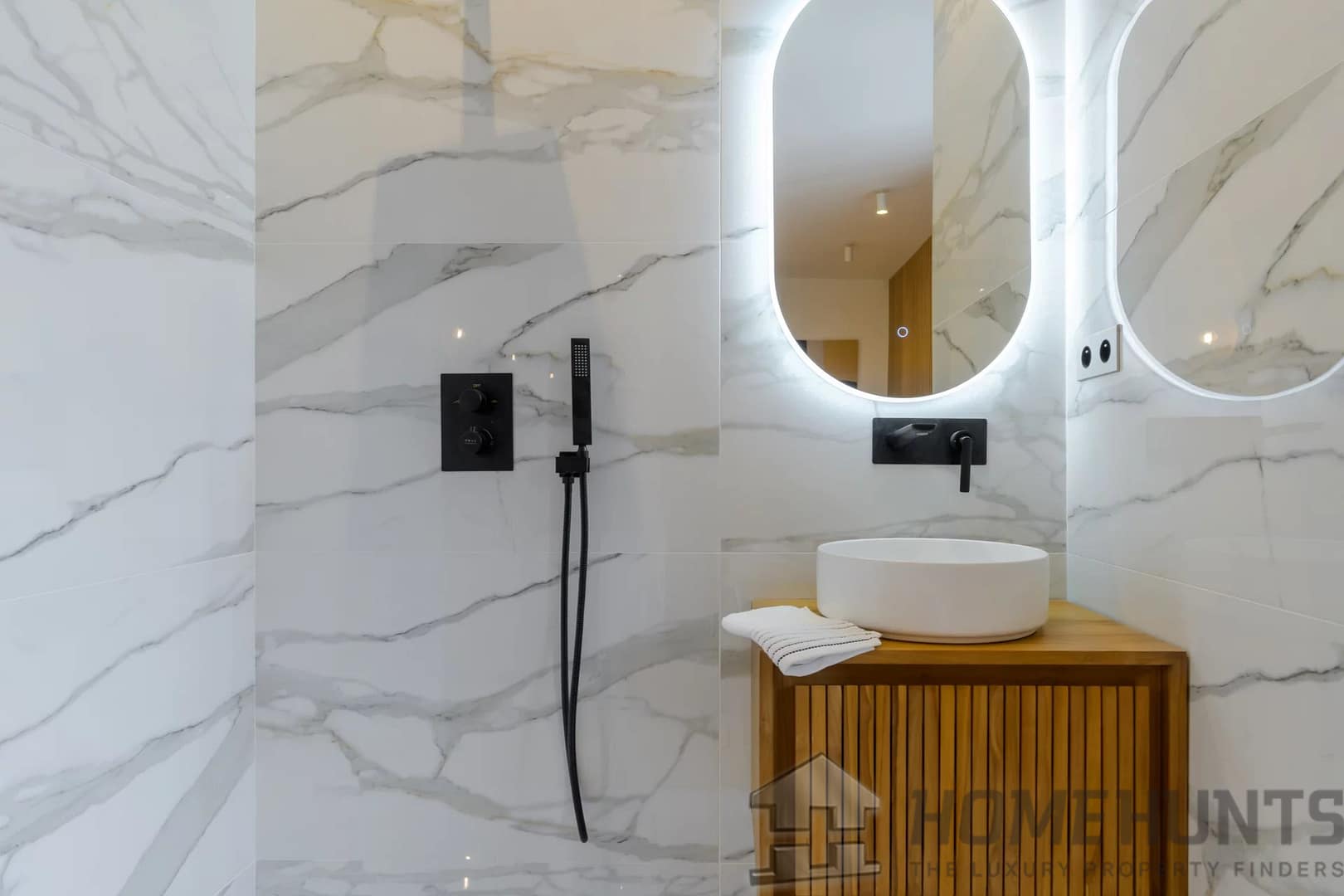 On the ground floor, the villa benefits from two fully independent guest apartments, each offering a private lounge, fitted kitchen, double bedroom, and shower room—ideal for hosting family or guests in complete privacy.