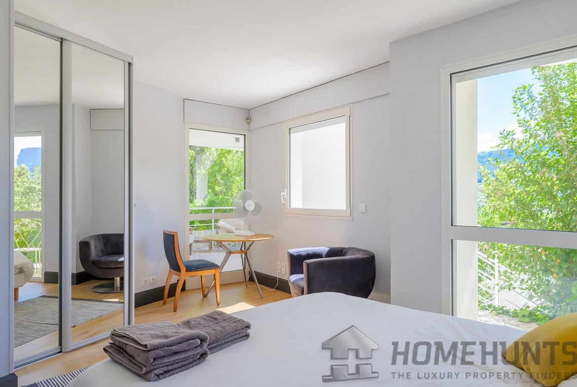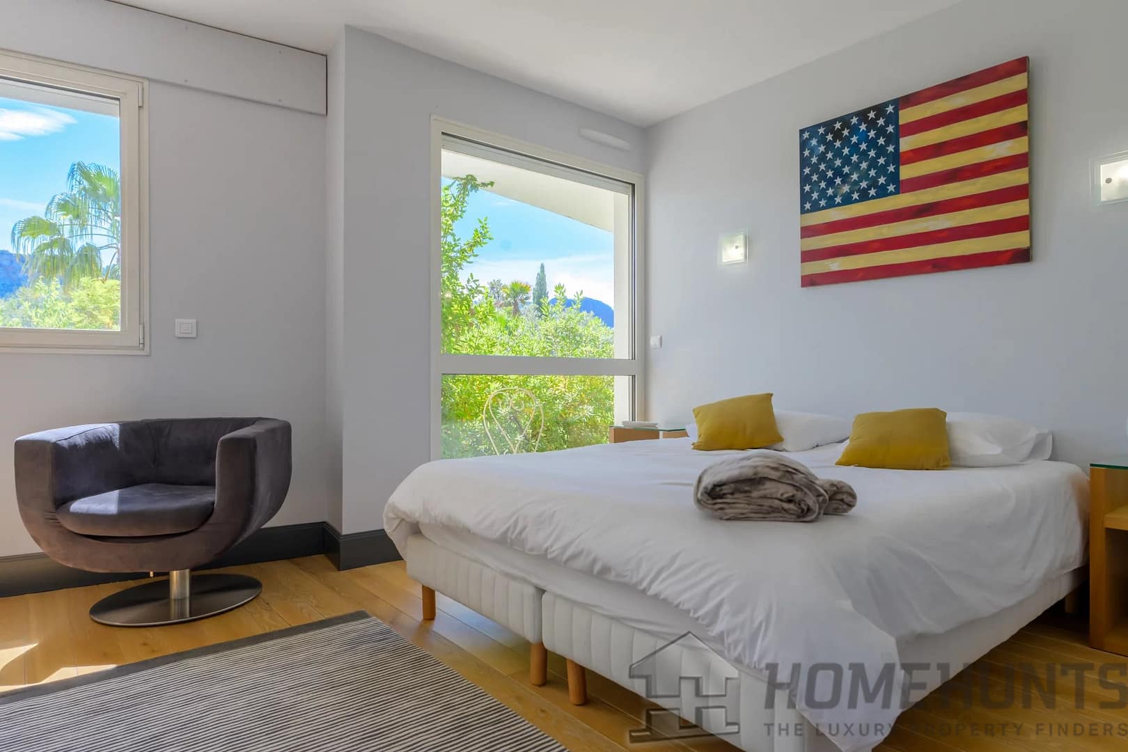 Designed on two levels with an elevator, this property offers a bright living room of 85m2 opening onto the fully equipped kitchen. On the southeast side, a sea-view terrace is perfect for enjoying breakfast while enjoying the morning sun.