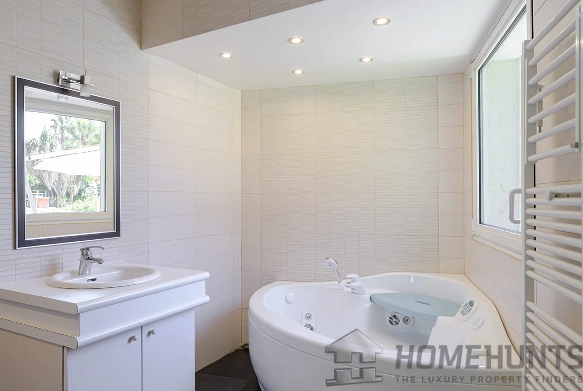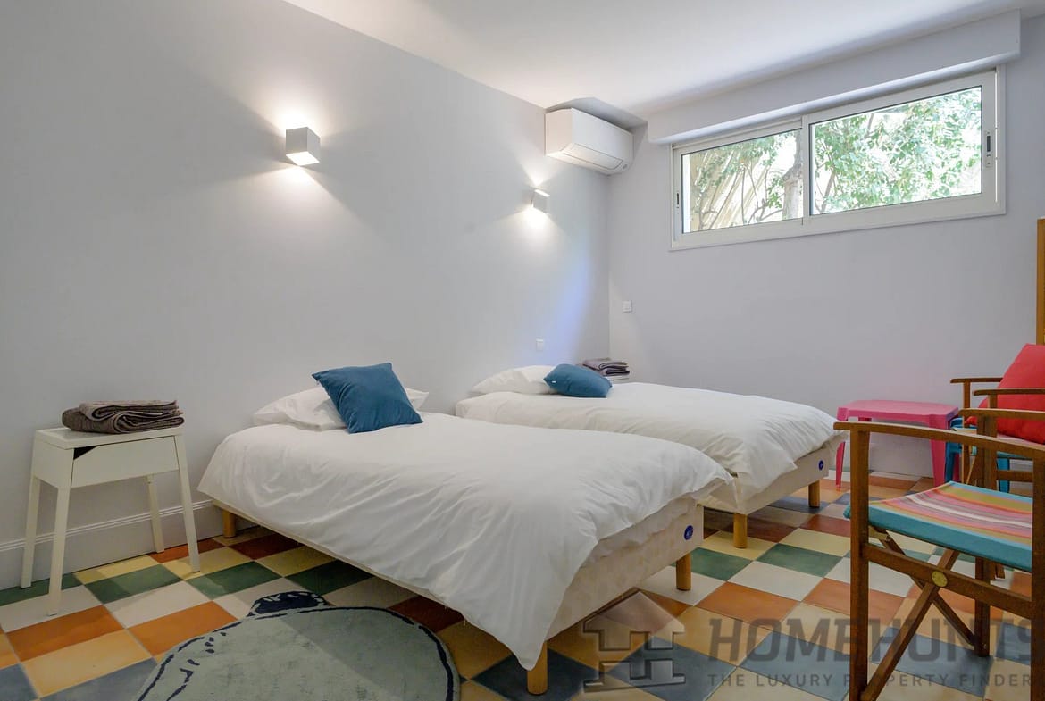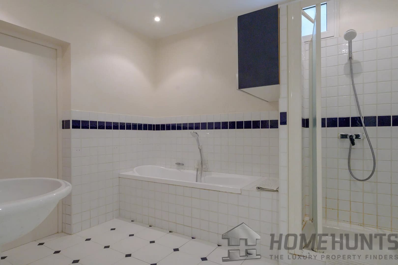 The sleeping area offers five bedrooms, including a master suite with its spa bathroom. There are also two shower rooms and one bathroom.