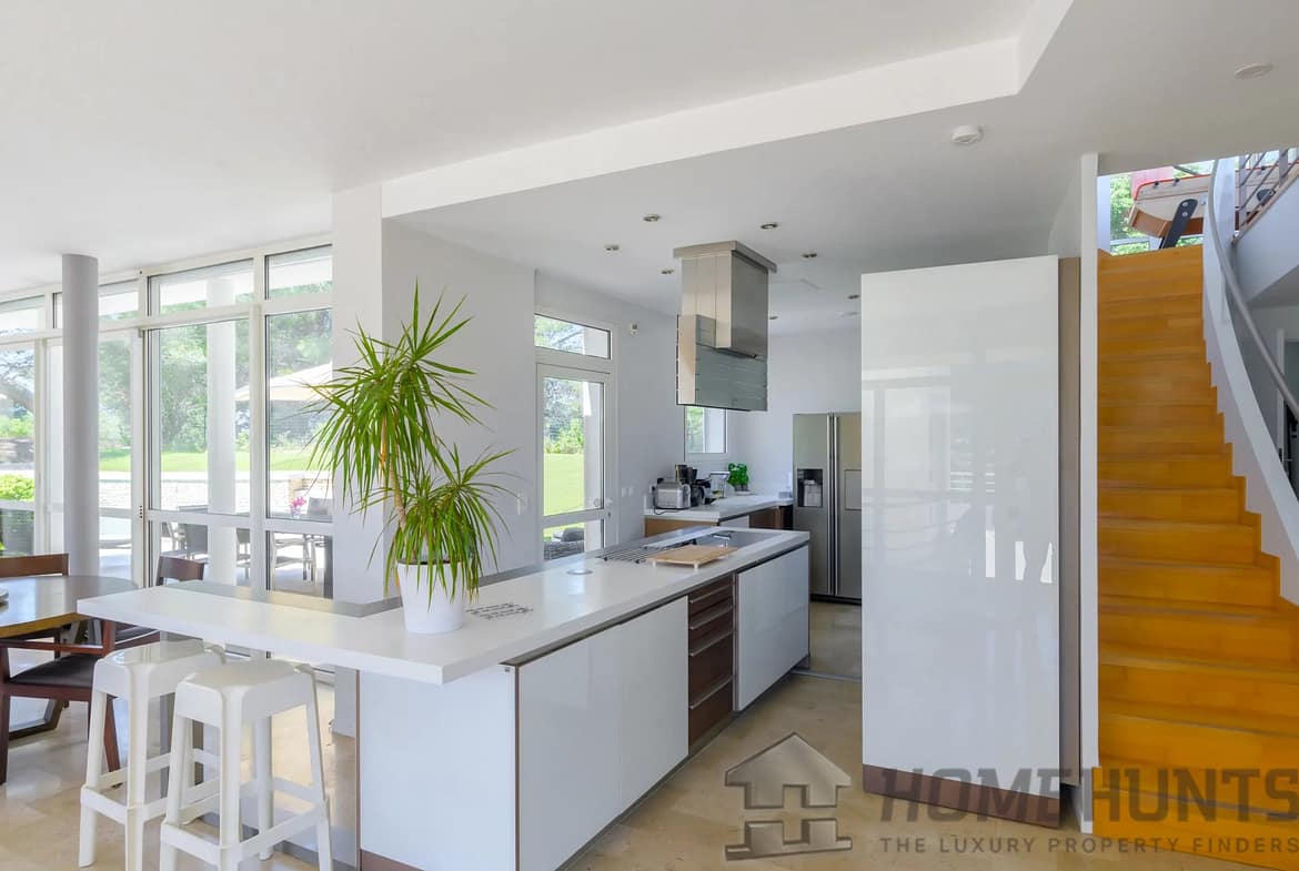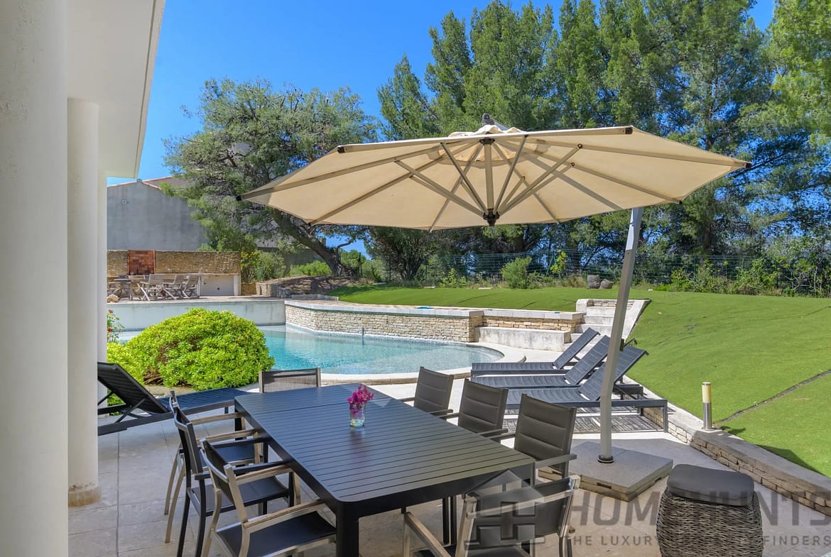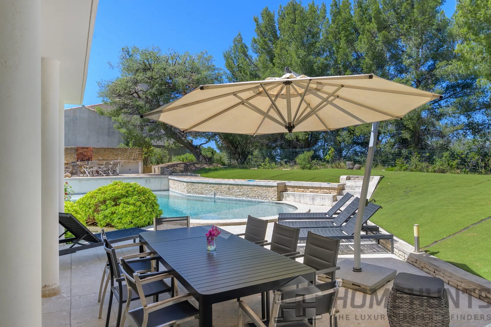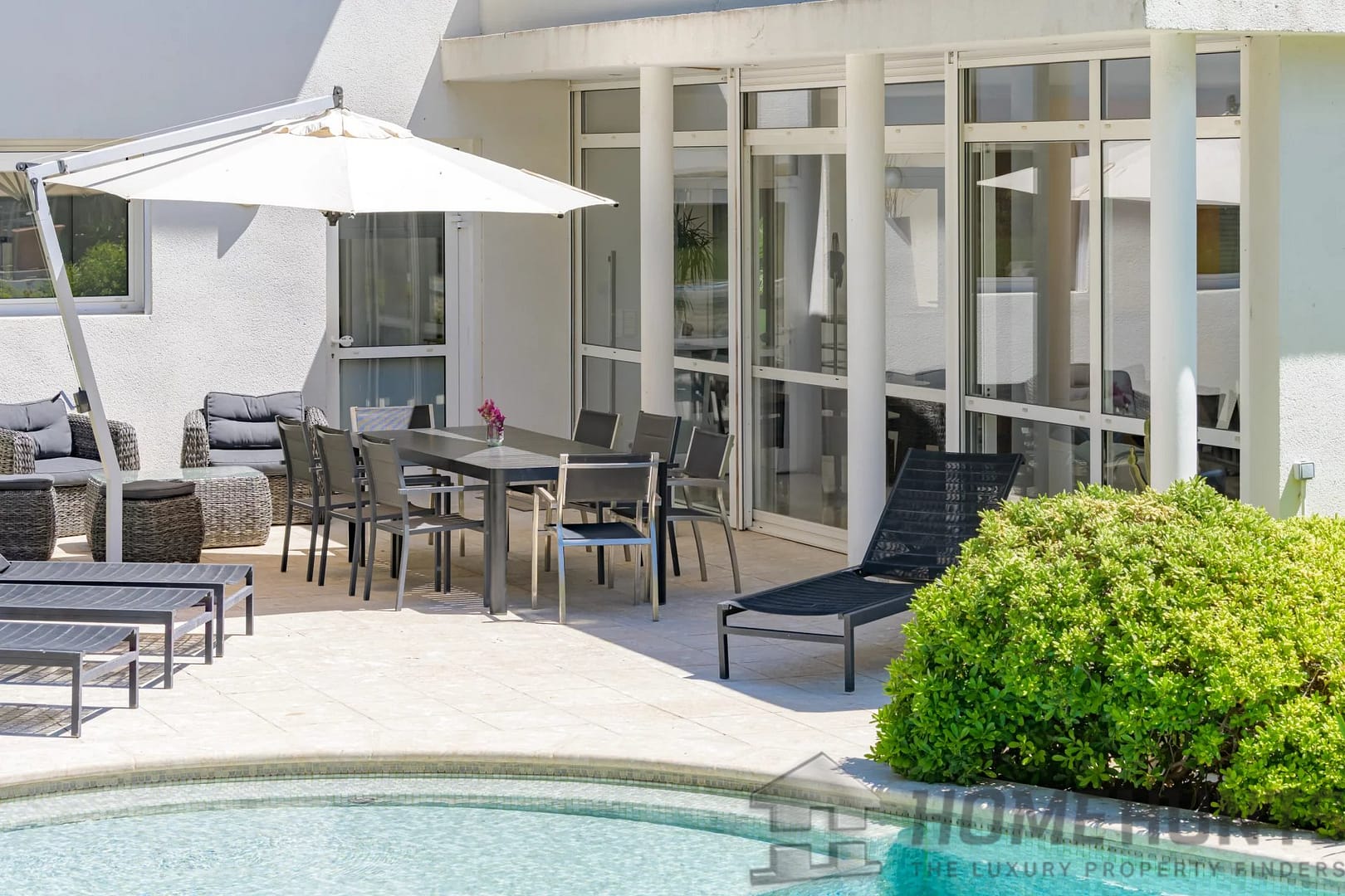 On the southwest side, a large terrace is ideal for lunch and dinner overlooking the infinity pool and its exotic garden.