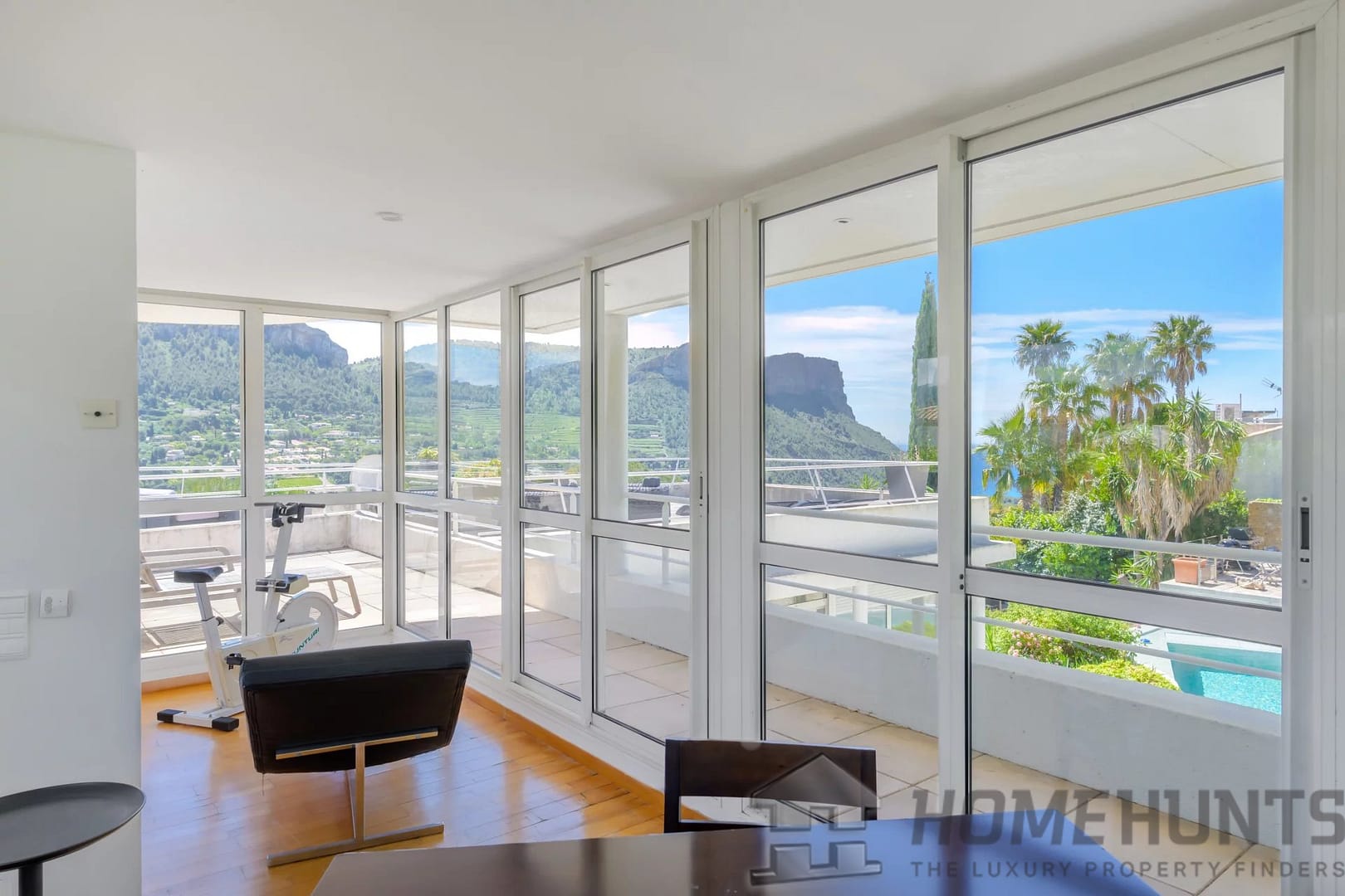 On the top floor is a spectacular room with floor-to-ceiling windows, opening onto a solarium with breathtaking 360 degree views of Cassis.