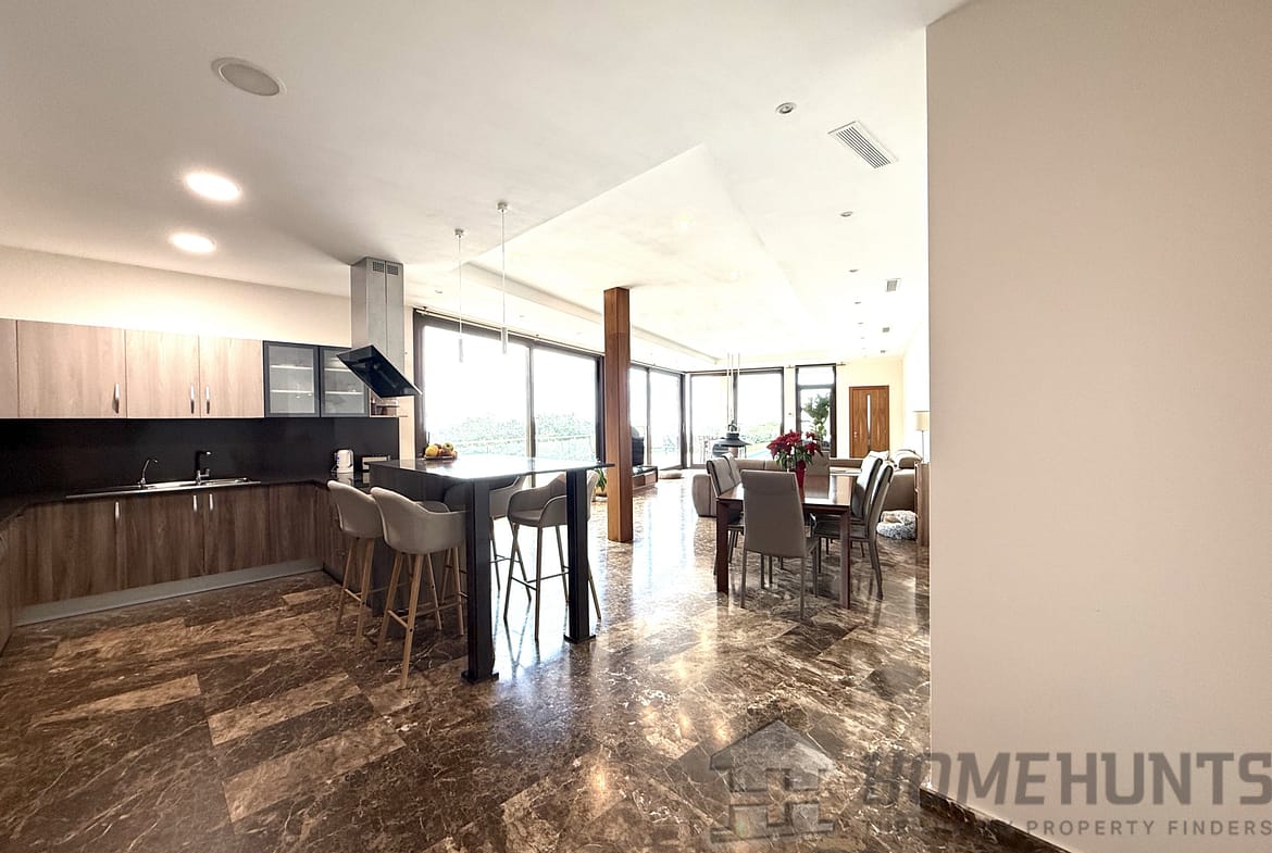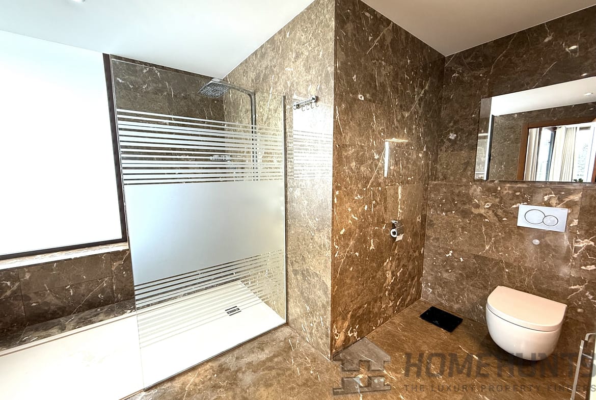 Upon entering, you are welcomed by grand, light-filled interiors, enhanced by floor-to-ceiling windows and sumptuous marble flooring. The open-plan living and dining areas flow seamlessly onto two expansive terraces—offering an impressive 90 m2 of outdoor living space—where breathtaking views of the sparkling Mediterranean unfold before you.